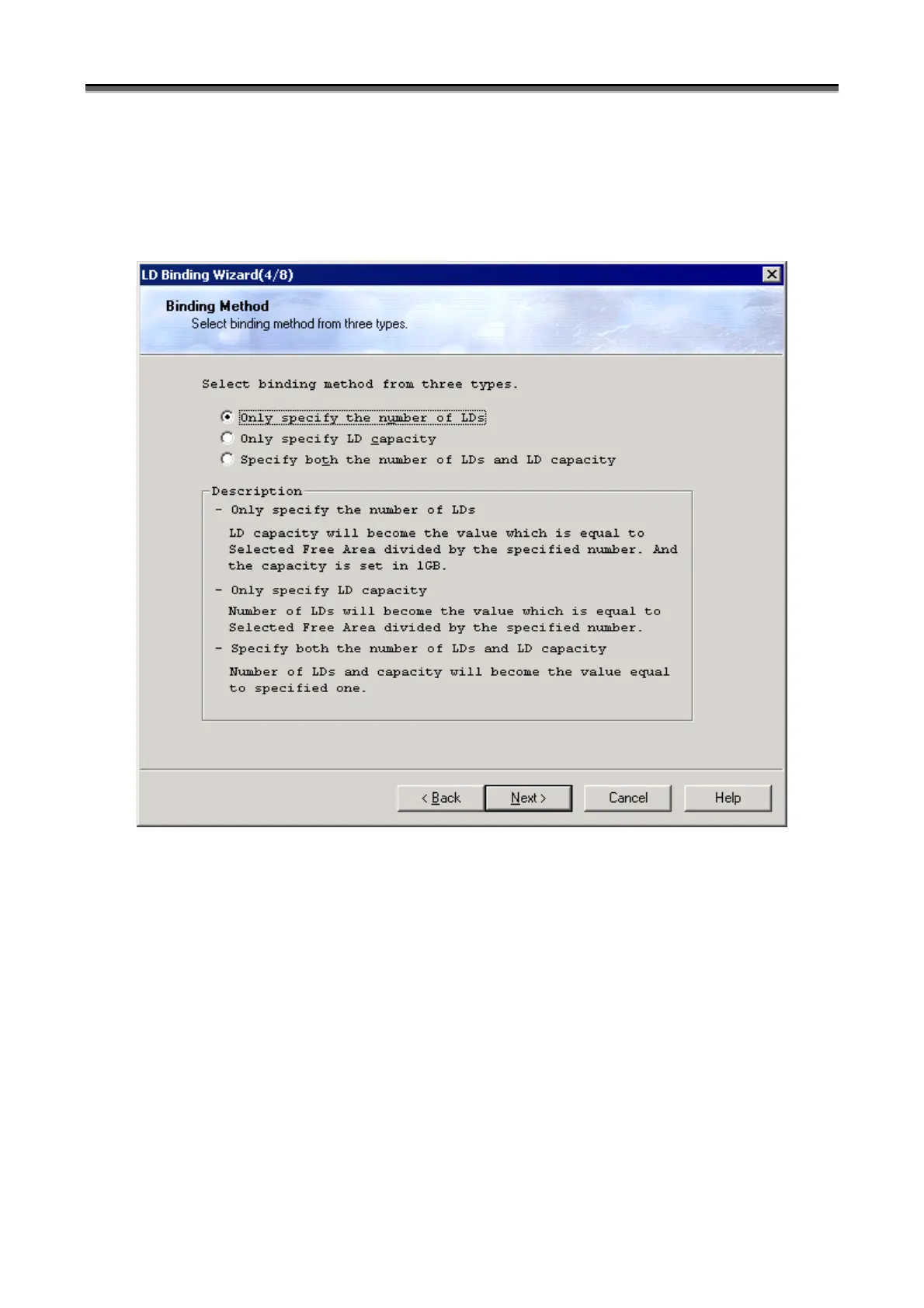 capacity, set the capacity same with that of a logical disk already bound, or directly designate any value for