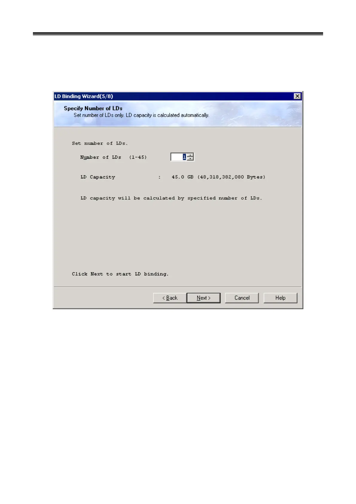 Check-marking on [Only specify the number of LDs] on the “Binding Method” screen and clicking the [Next]