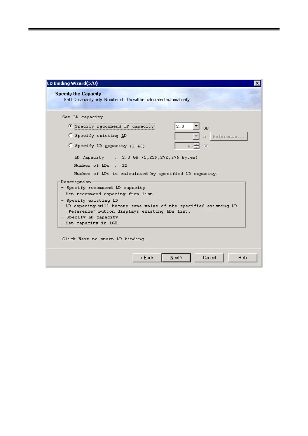 Check-marking on [Only specify LD capacity] on the “Binding Method” screen and clicking the [Next] button