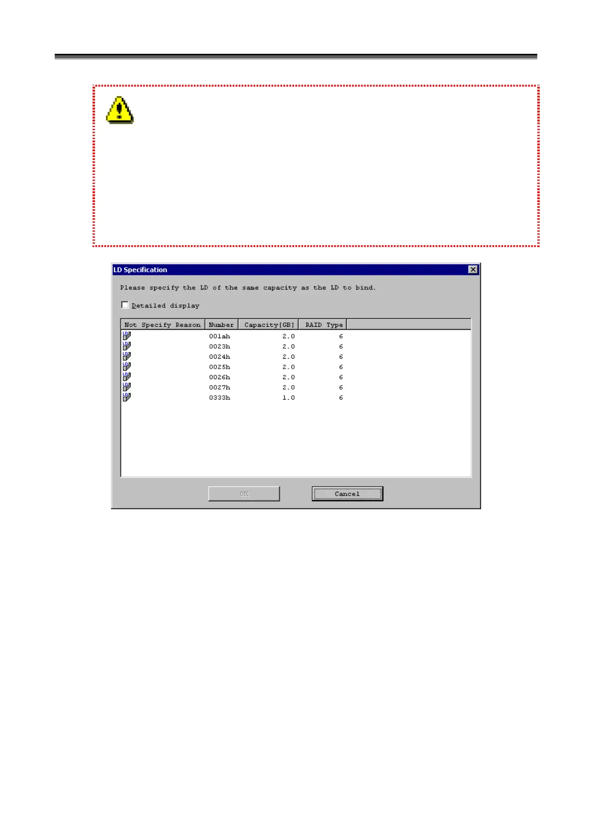 For detailed reasons for mismatching capacity units and details on binding logical disks with a RAID