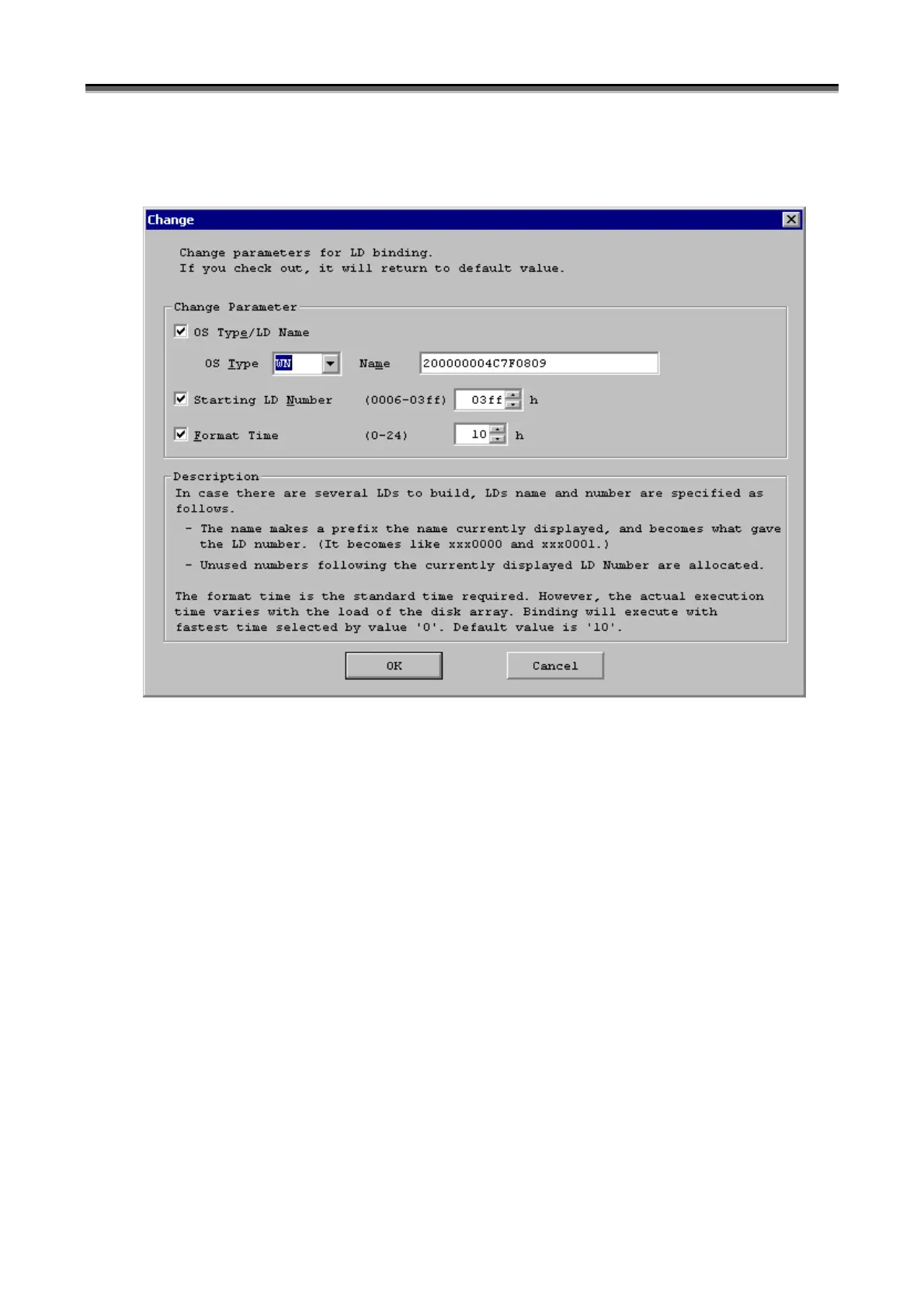 make any change for logical disk name, the initial value is used in the form mentioned