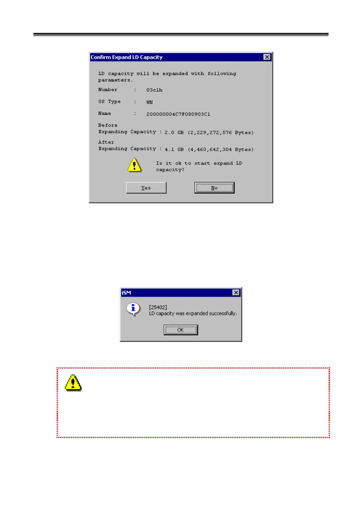 [No] button: Returns to the “LD Capacity Expansion” dialog.