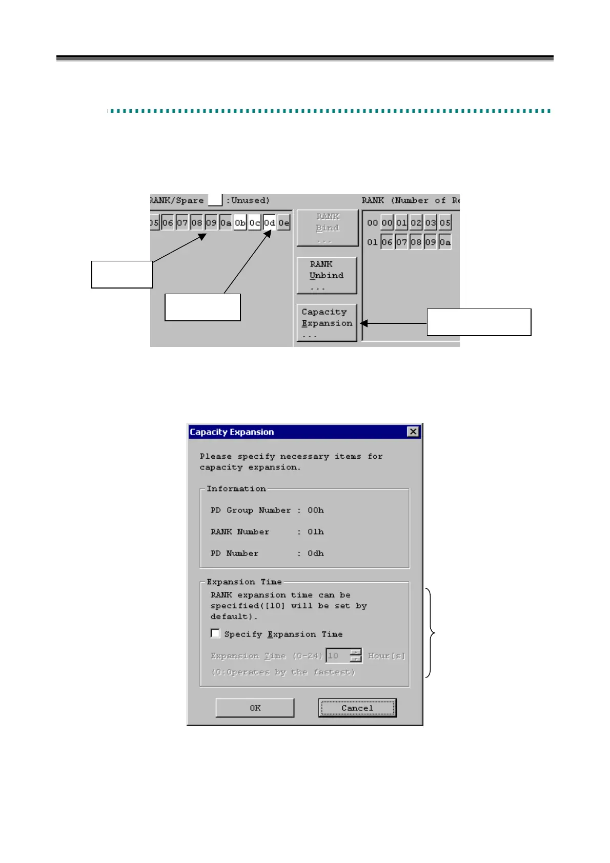 RANK/Spare Tab screen (Figure 8-1) enables the [Capacity Expansion] button.