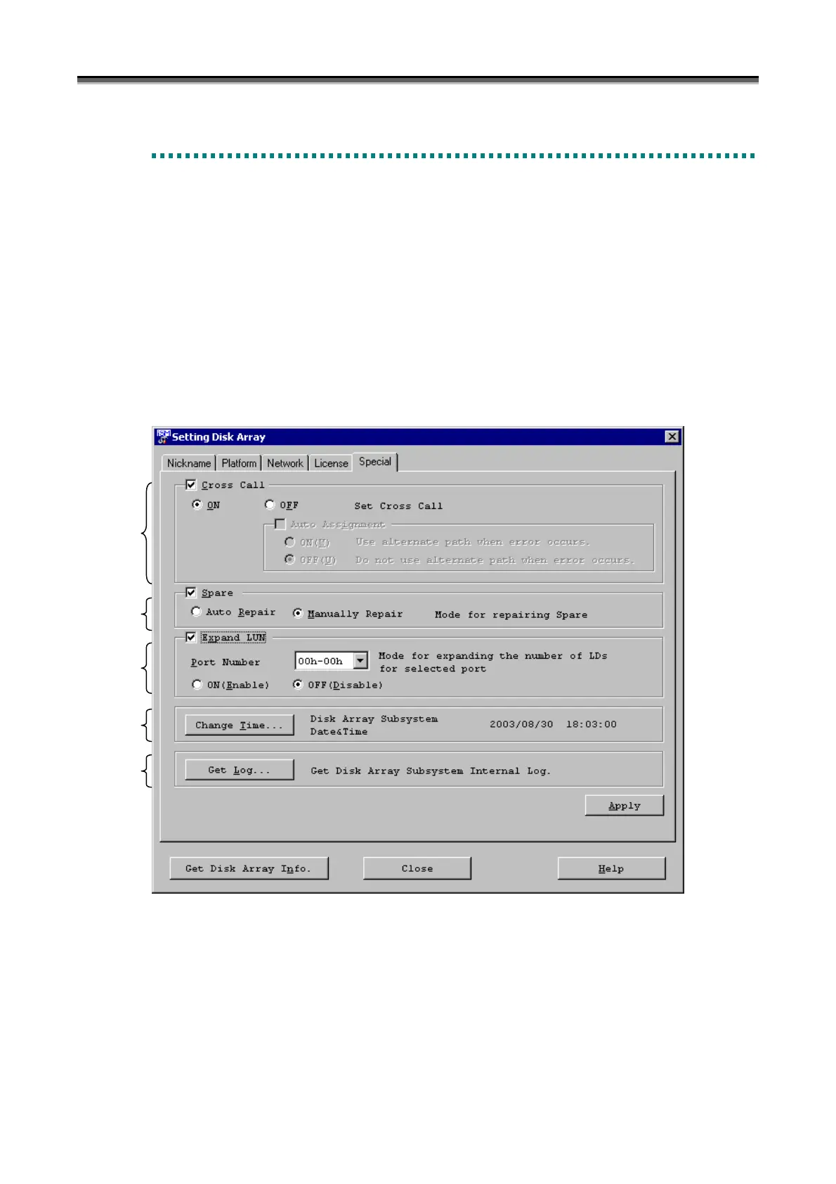 You can also make various settings by activating each checkbox (such as Cross Call, Spare, and Expand LUN) to