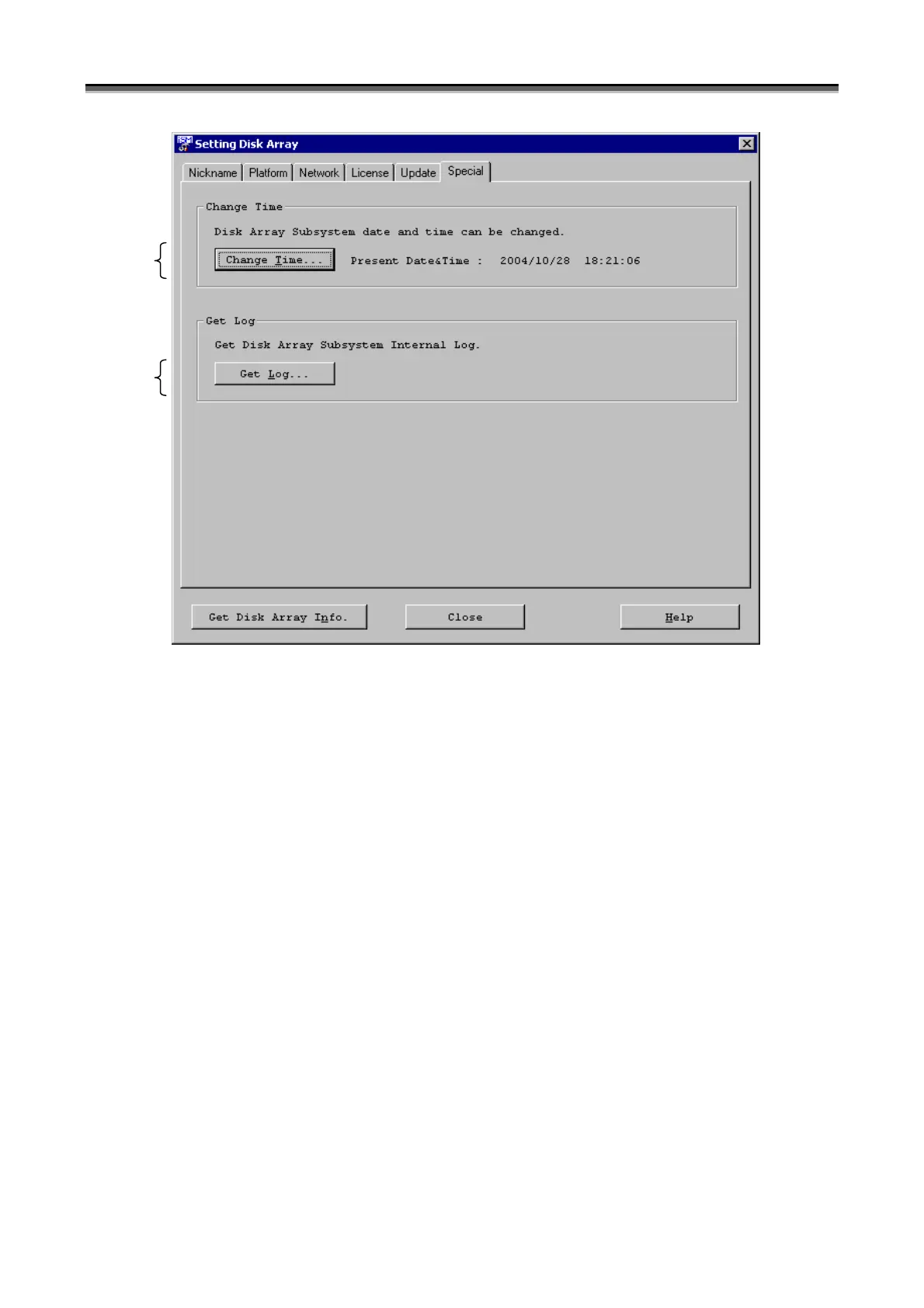 Subsystem manually” is activated, the disk array date can be changed to arbitrary date. However, this is not