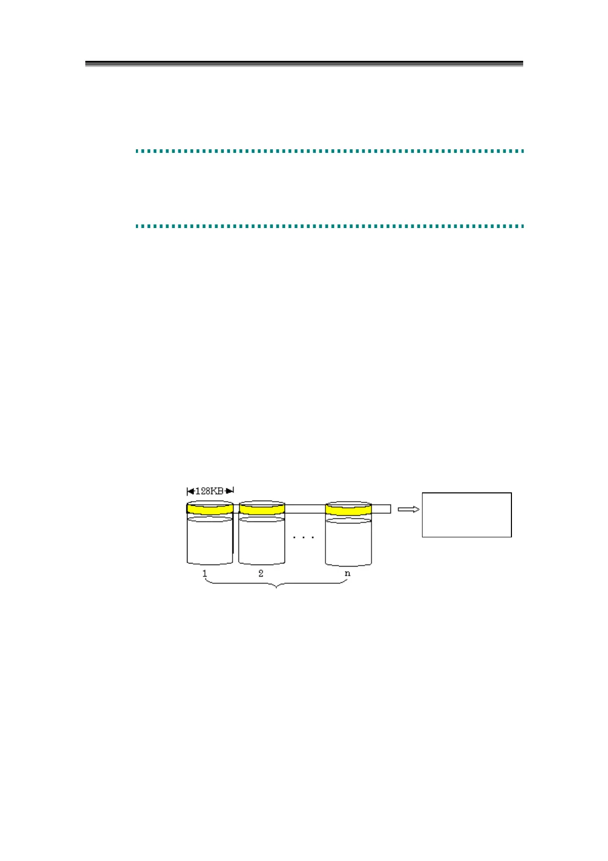 The striping size for of this disk array series is defined as 128KB. Thus, “128KB × number of