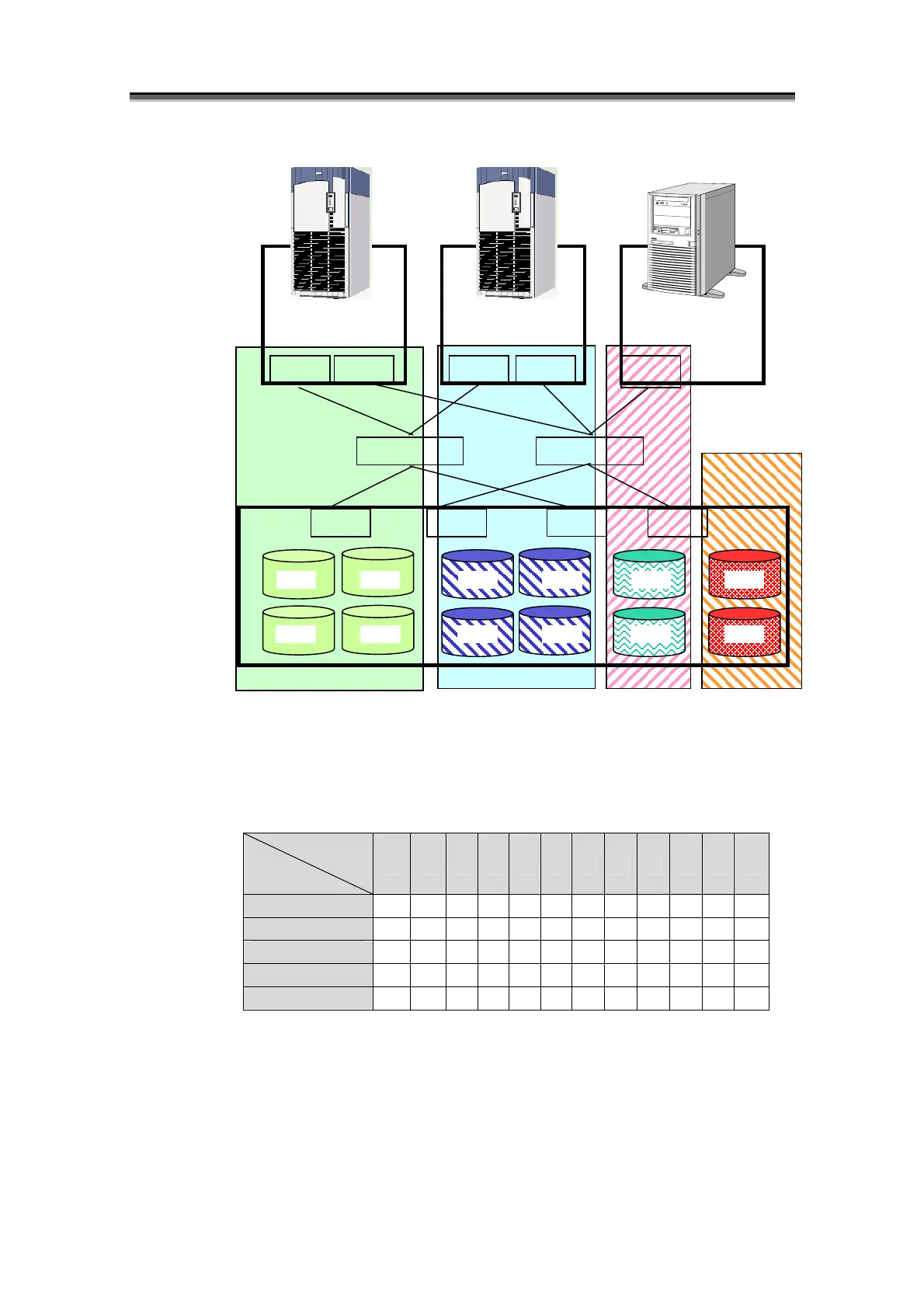 • Business server A can access logical disks LD00, LD01, LD06, and LD07.