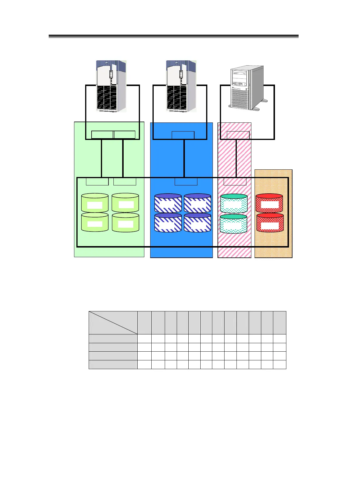 • Business server A can access logical disks LD00, LD01, LD06 and LD07 through ports Port0
