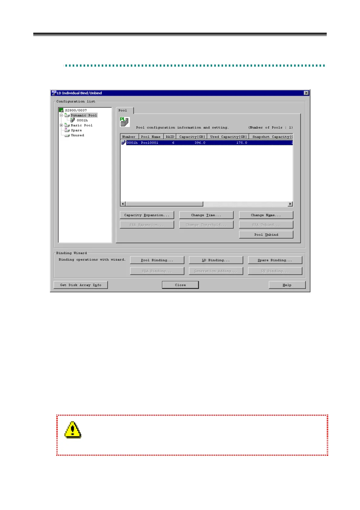 You can expand the capacity of a pool from the “LD Individual Bind/Unbind” screen.