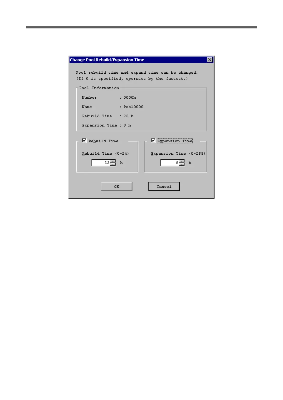 Figure 7-28 Change Pool Rebuild/Expansion Time Dialog