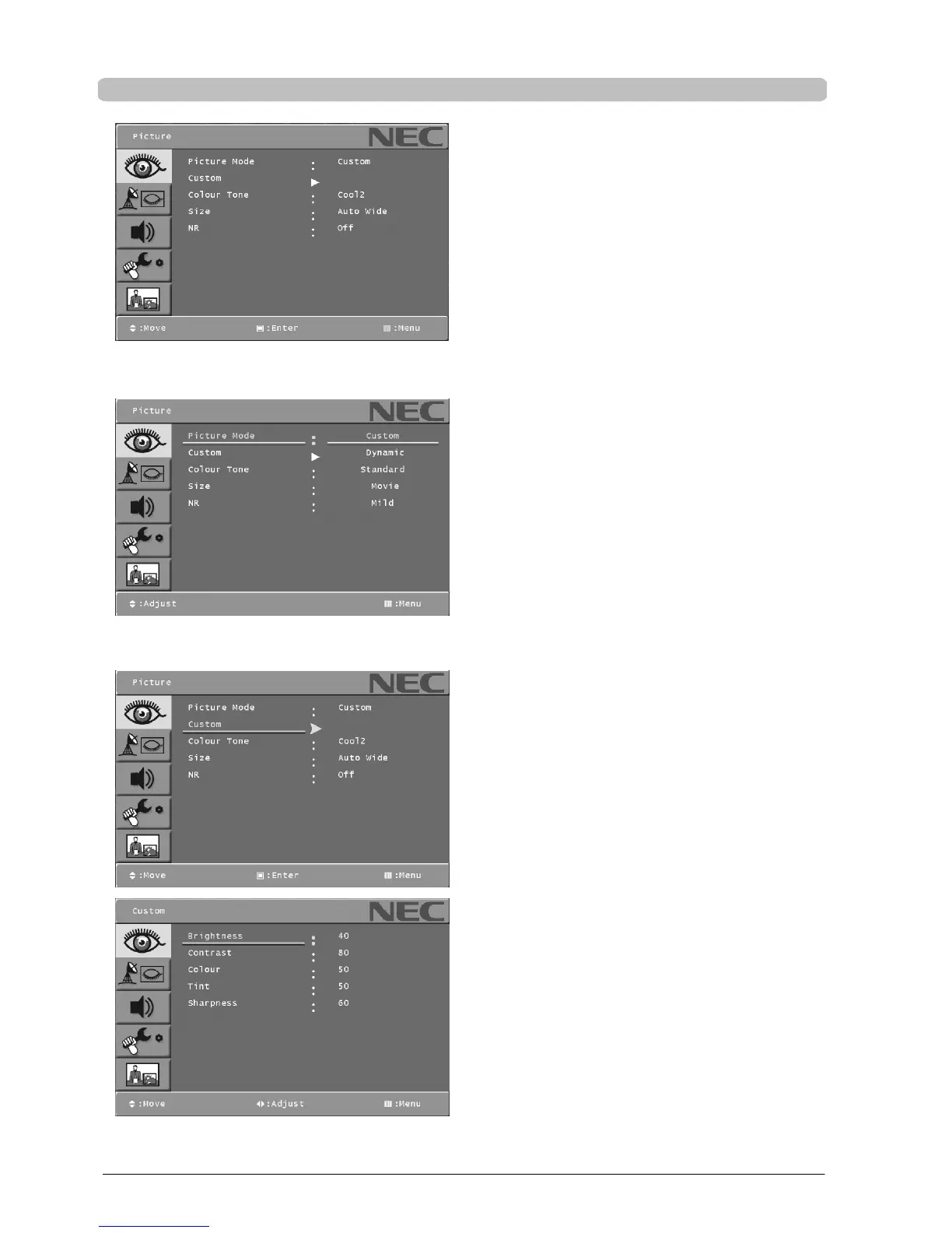 . Select the Picture main menu.