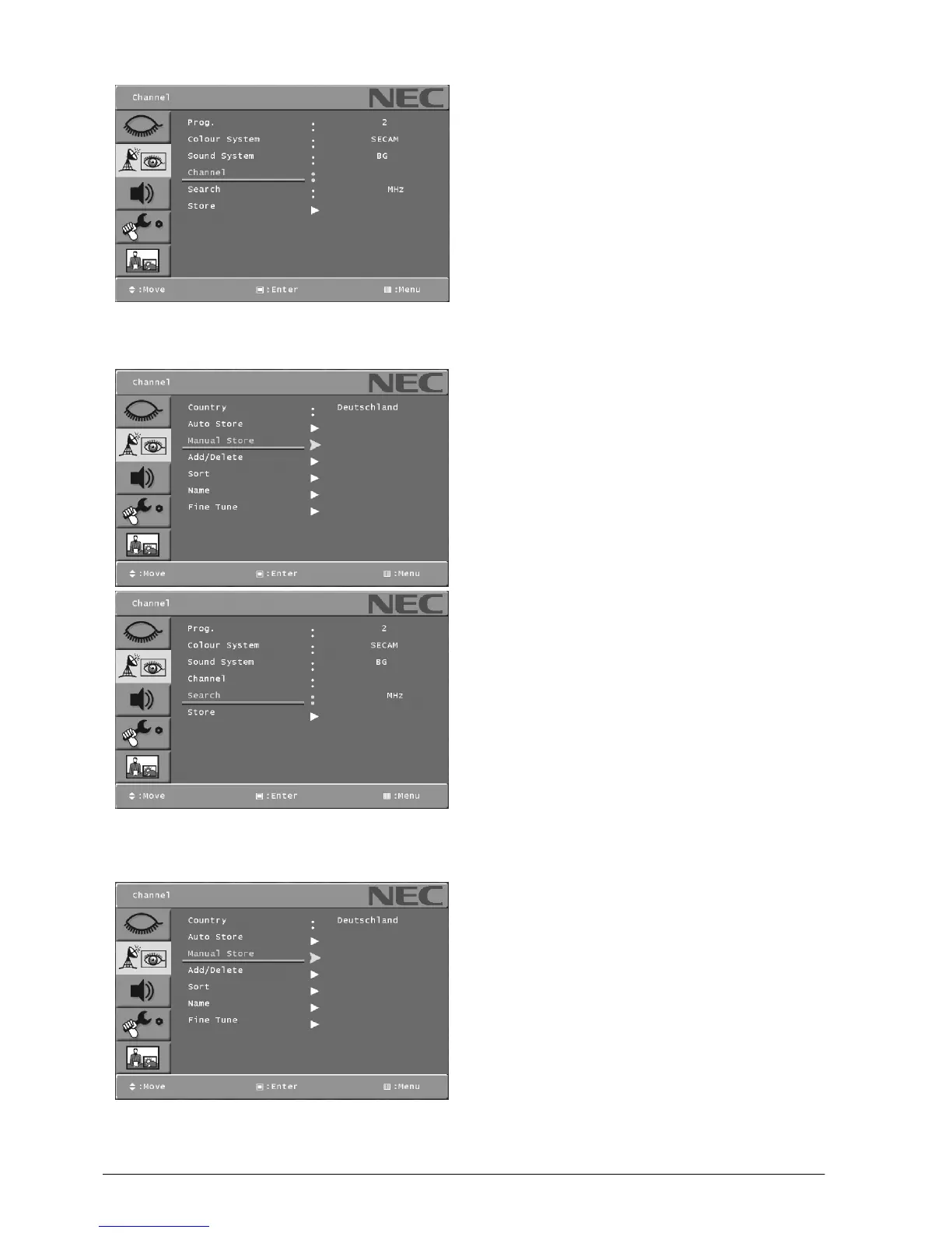. Select the Manual Store menu with [Y]or[B]button on the
