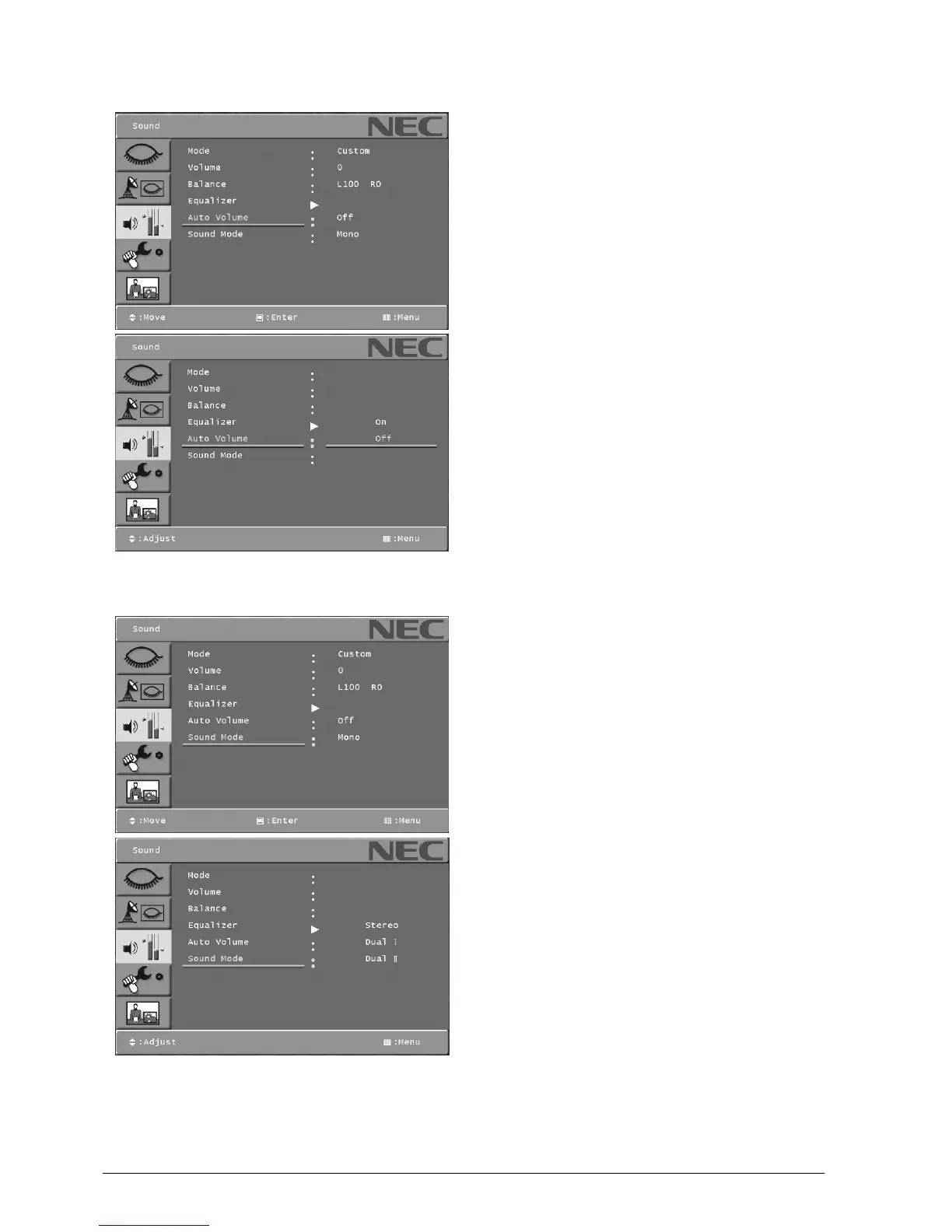 . Select the Sound main menu with [Y]or[B] button on the