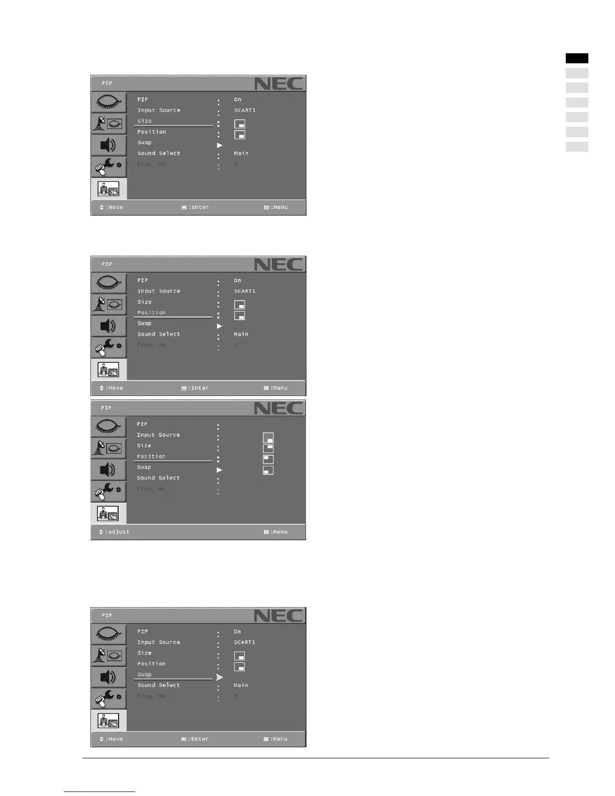 . Select the PIP main menu with [Y]or[B] button on the re-