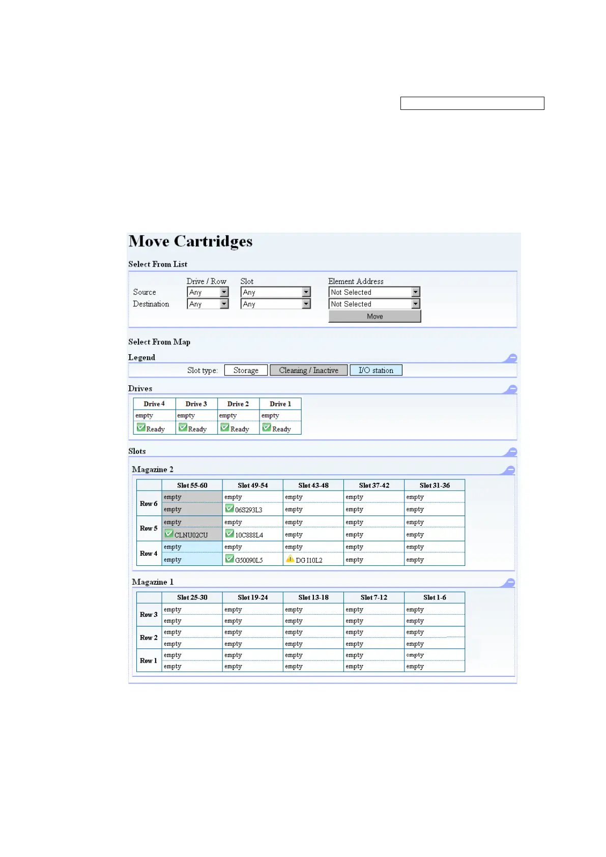 [Manage Library]-[Move Cartridge] Service/Administrator/Super user