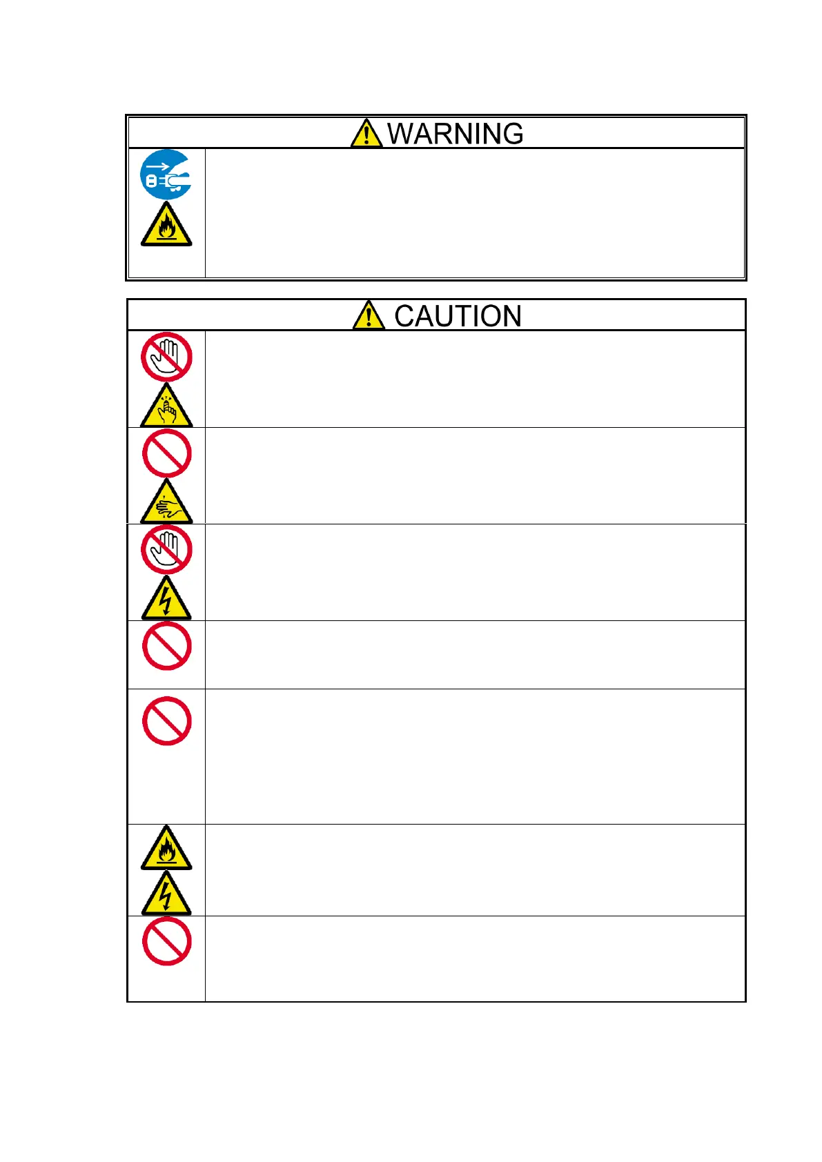 Do not put your hand inside the device. There is a possibility of injury by pinching your