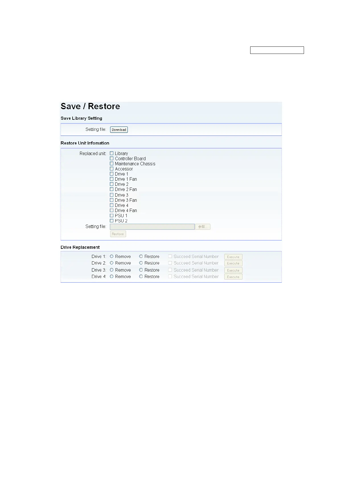 [Configure Library] - [Save and Restore] Service/Administrator
