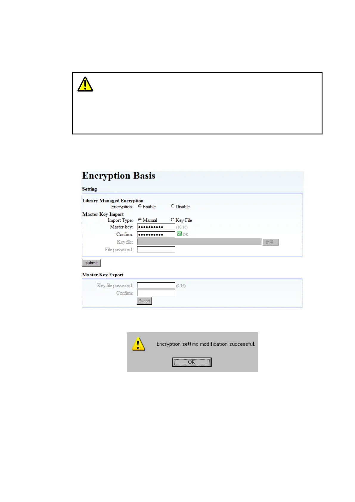 Select [Master Key Import] of [Encryption Basis], and then select “Manual” for Import Type.