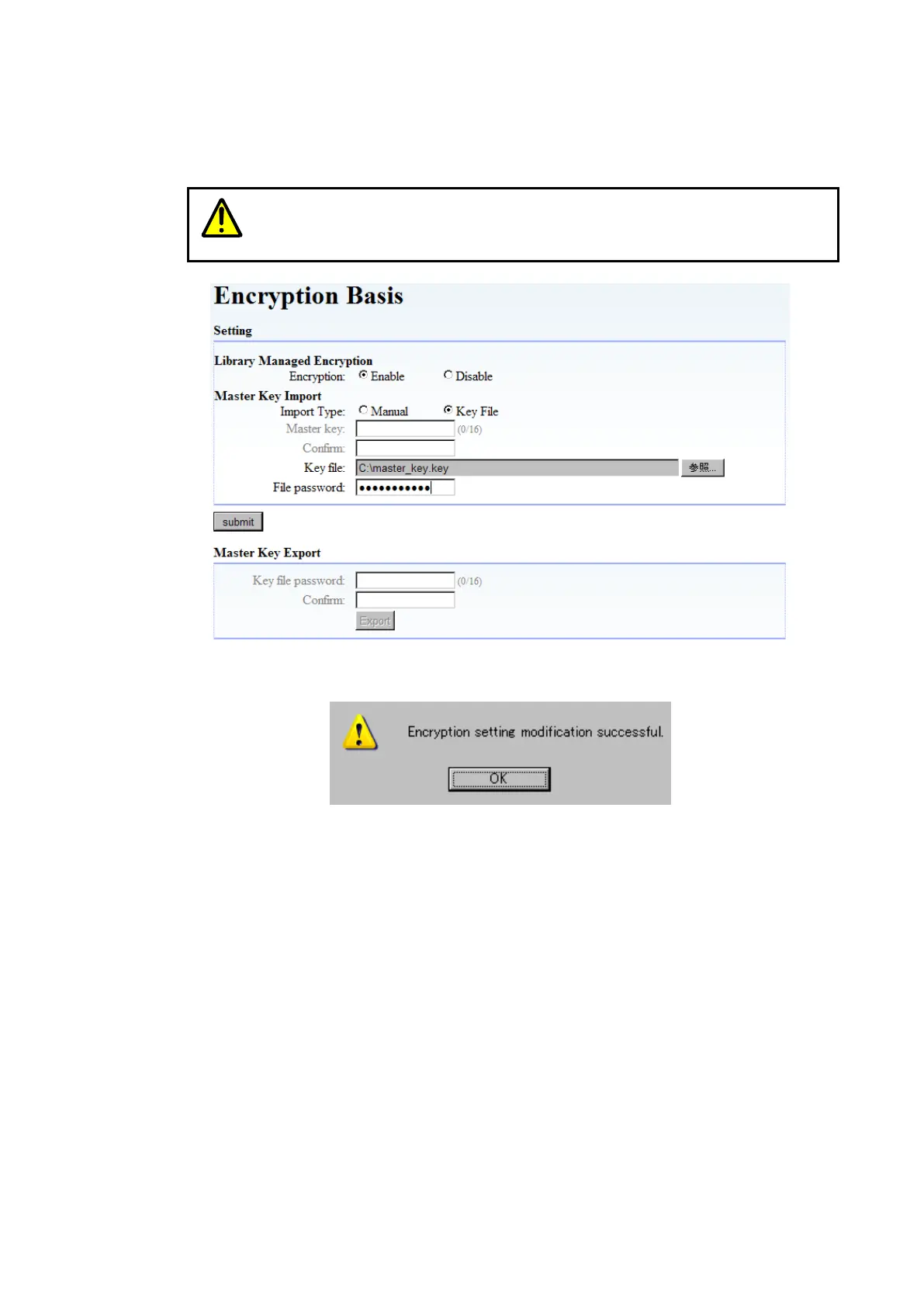 Select [Master Key Import] of [Encryption Basis], and then select “Key File” for Import Type.