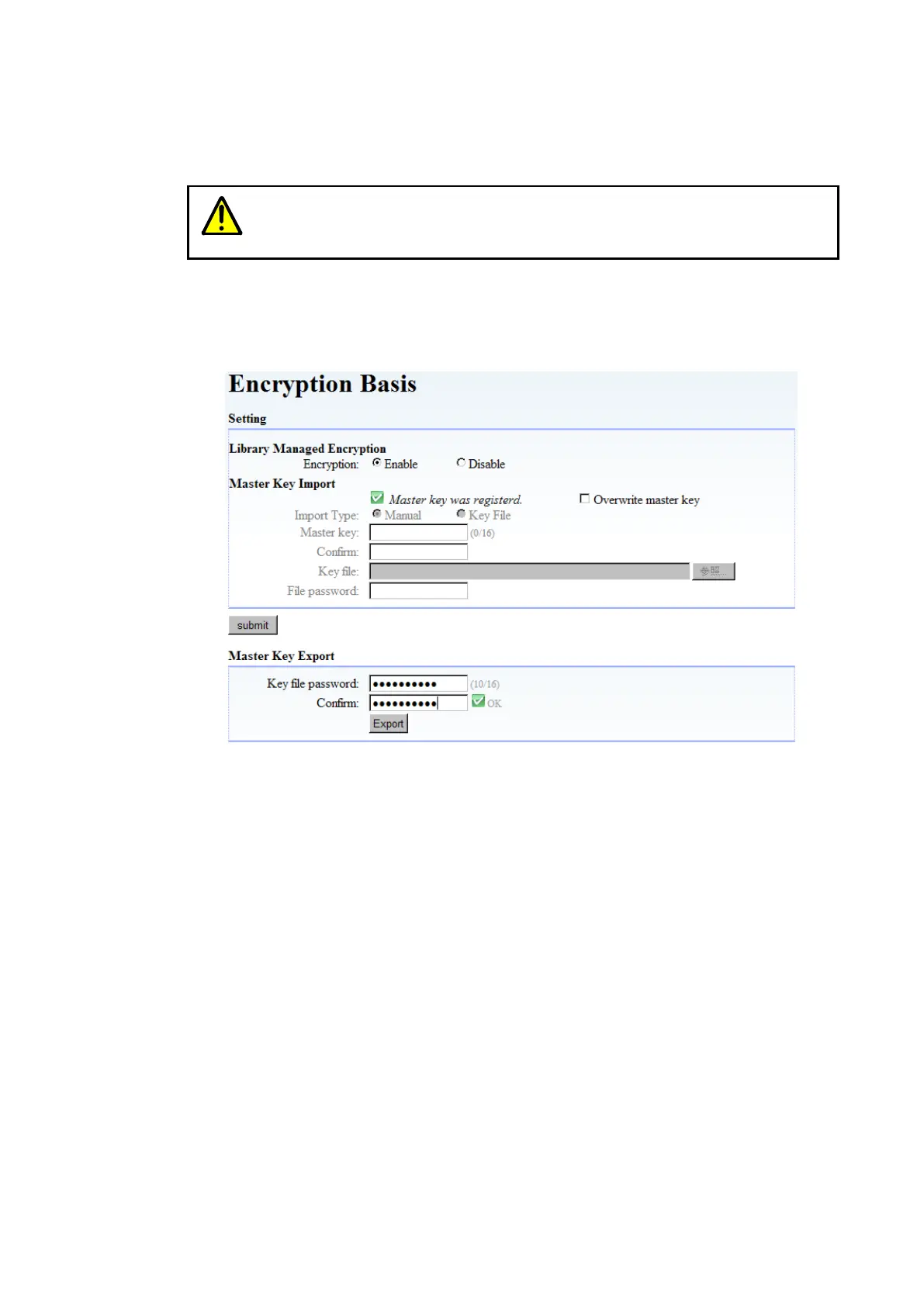 It is recommended to export and save (back up) the master key in a file after setting it so that you