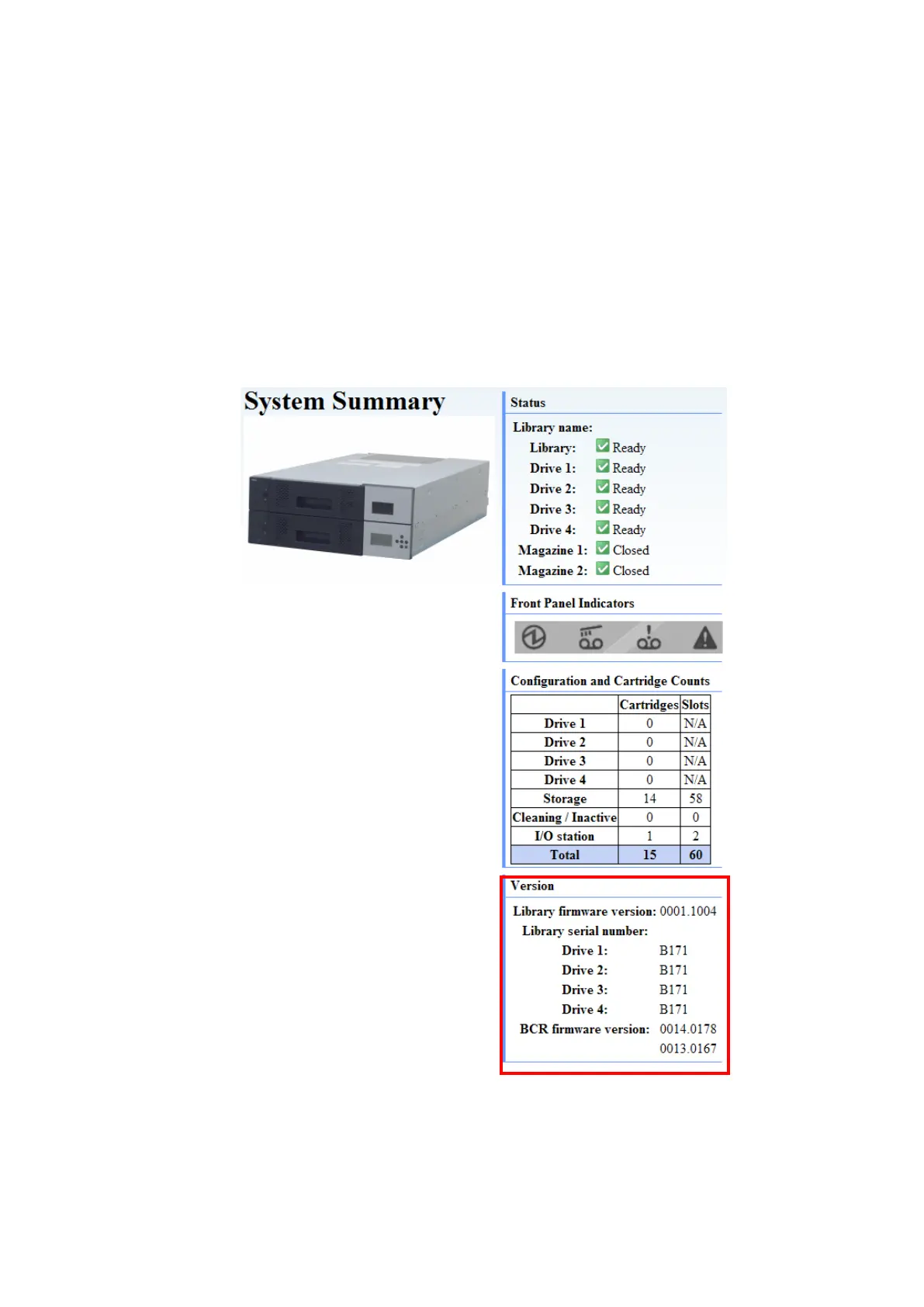 and drive firmware versions by checking [Version] under [System Summary] in [Monitor