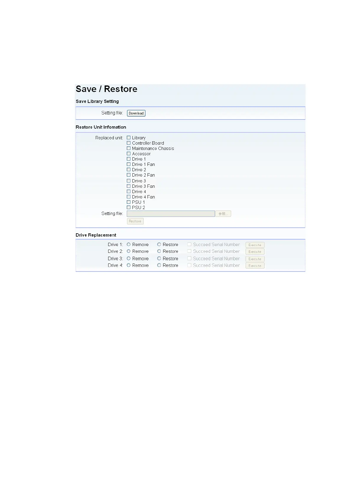 2. Click the [Save/Restore] menu and click the [Restore] button.
