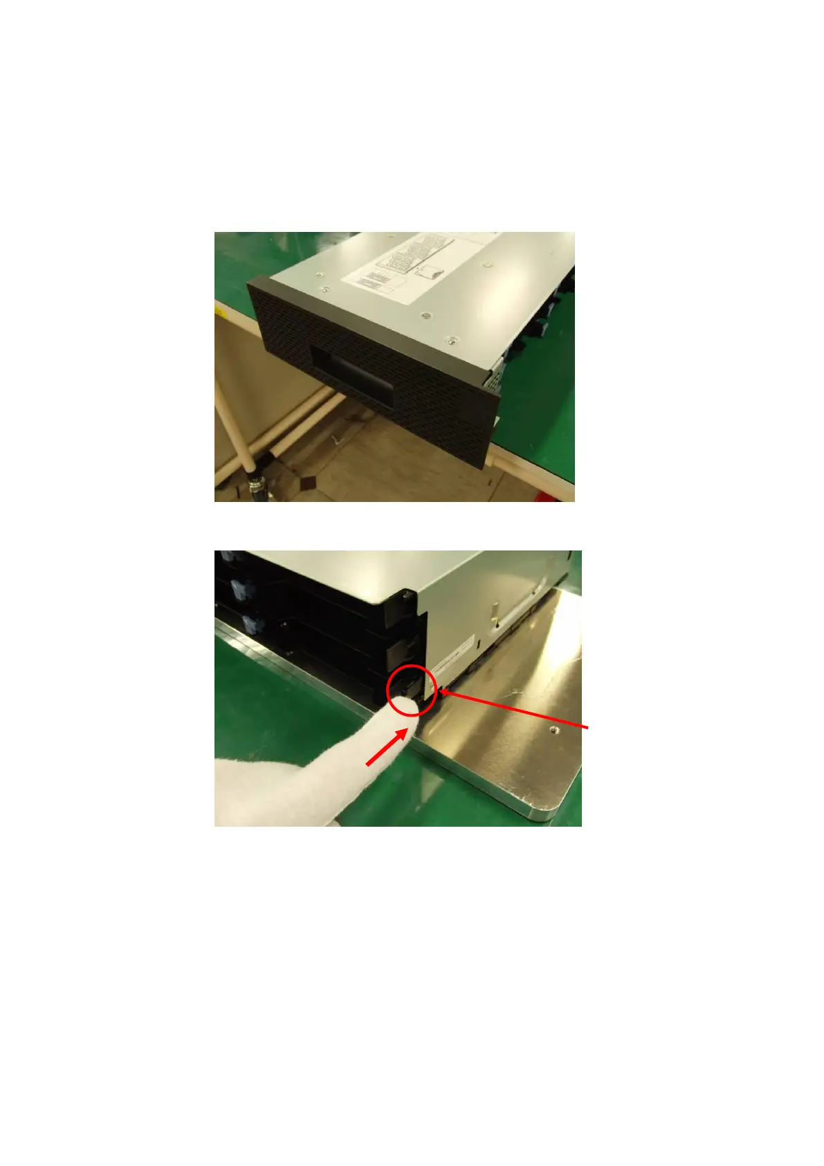 3. Push the I/O station unlock lever at the back of the front magazine in the direction of the arrow.