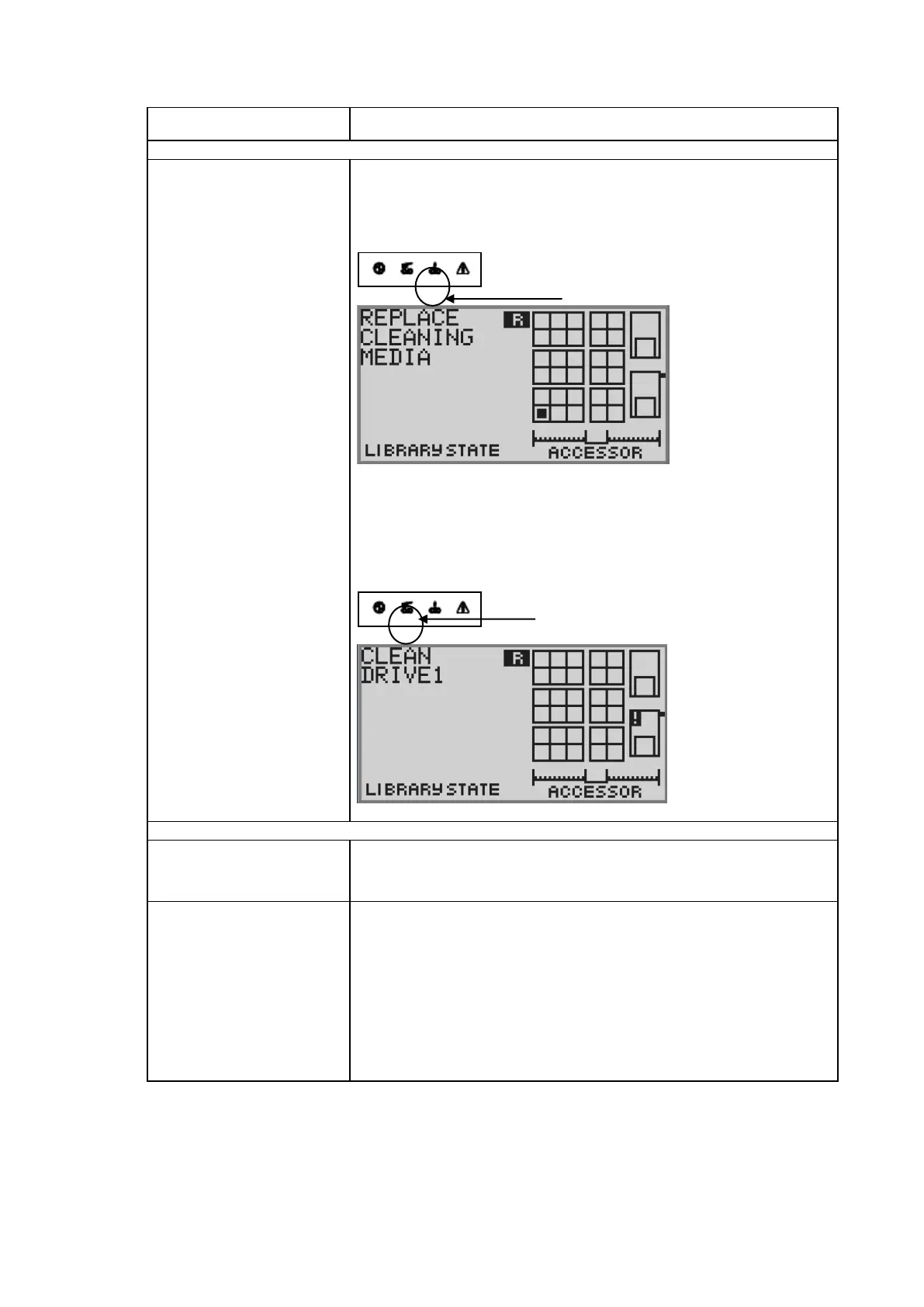 also indicated after cleaning of a drive, a cleaning tape is exchanged.