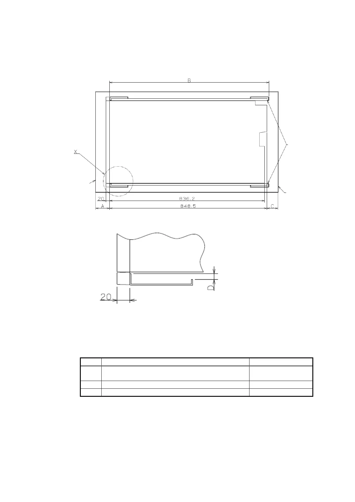 <4> The rack's internal dimensions must meet the dimension requirements shown in Figures A to C