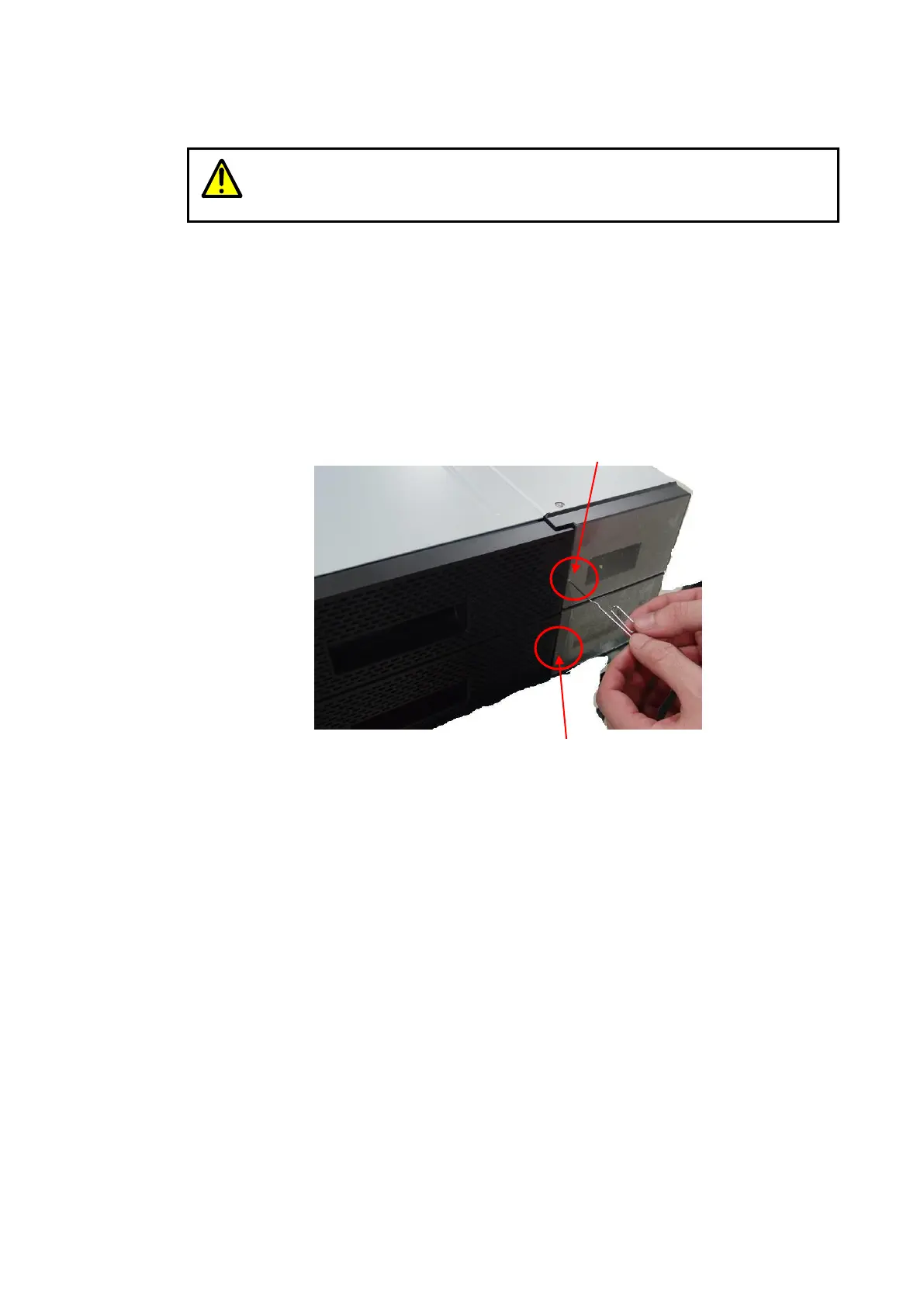 1) Insert a pointed object (such as a small Philips screwdriver) into the round hole shown below.