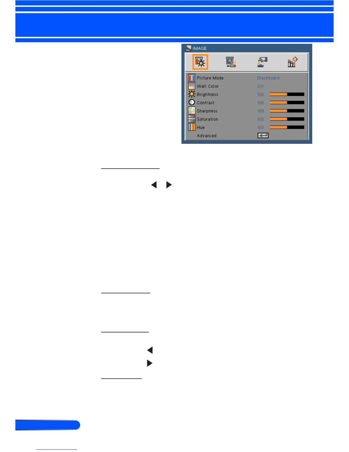 color settings when projecting onto a blackboard (green).