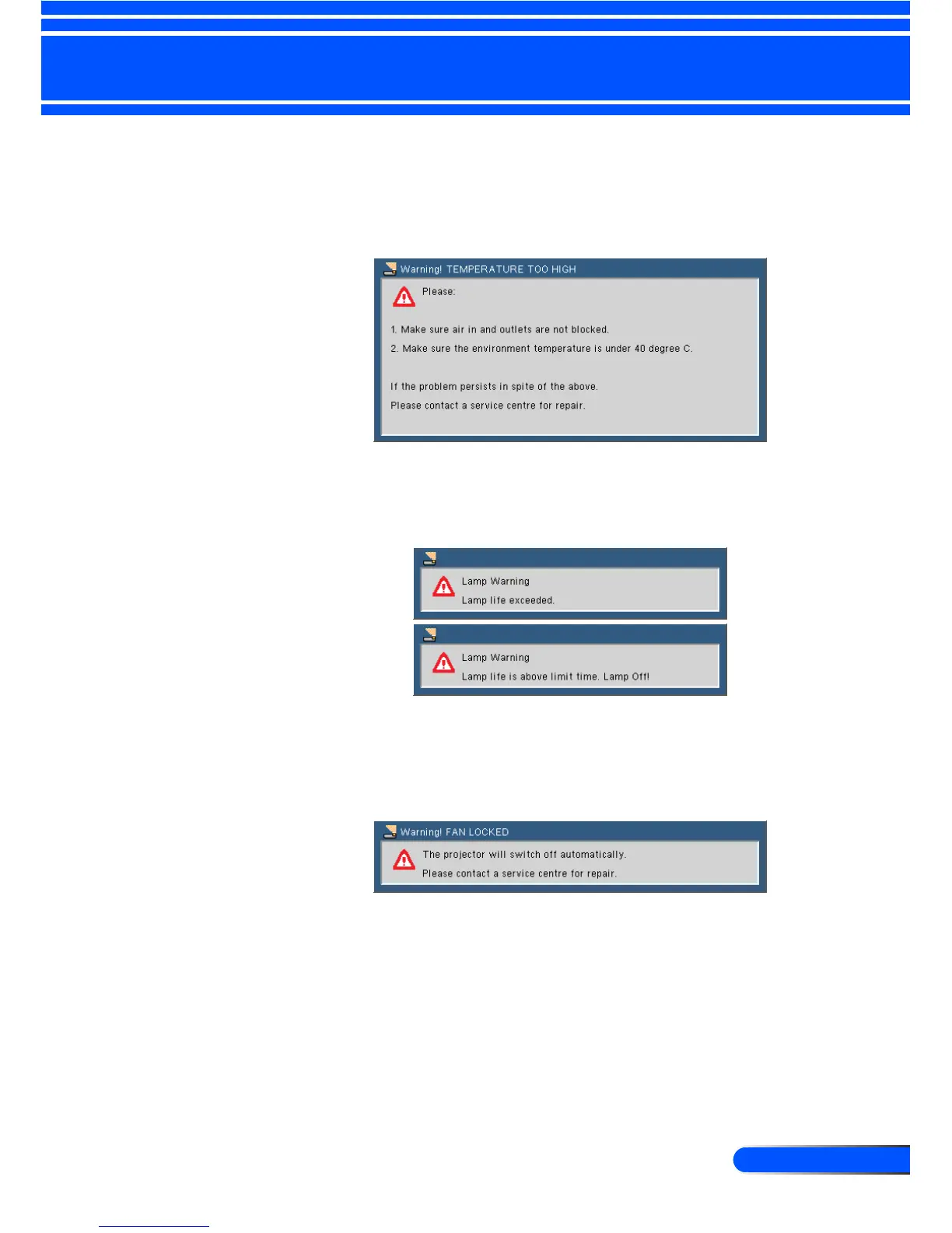 message below displays on-screen, it indicates the fan failed.