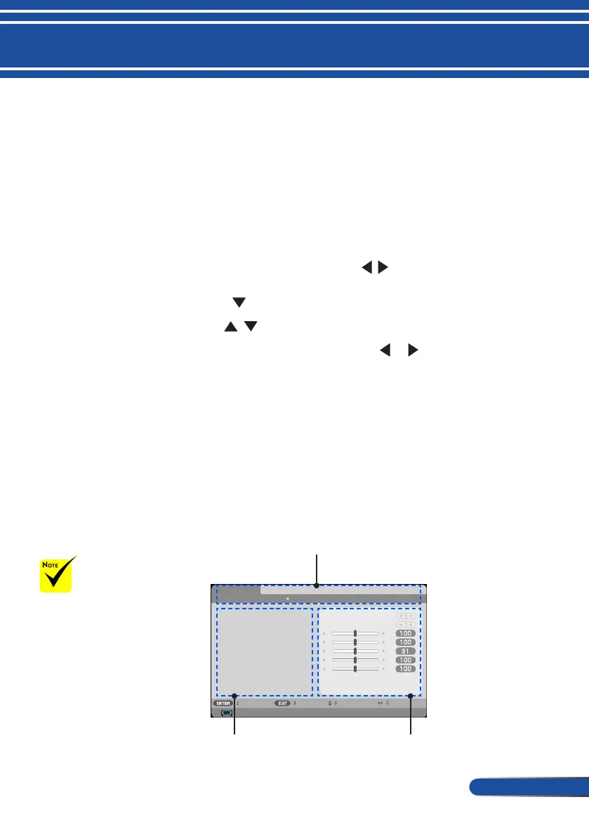 5. After adjusting the settings, press the MENU or EXIT button go