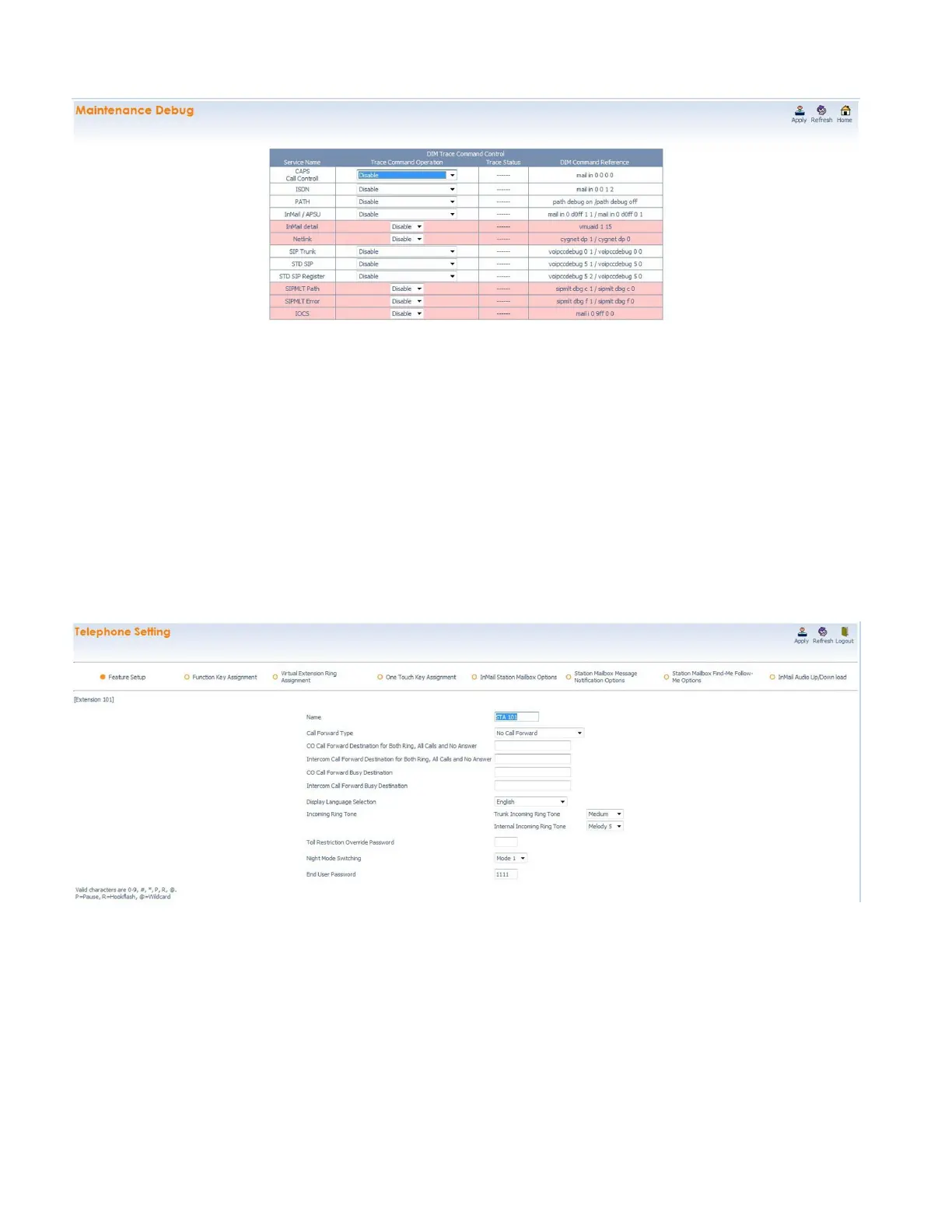 features, Station Name, Call Forwarding, Display Language, Ring Tone and End User Password.