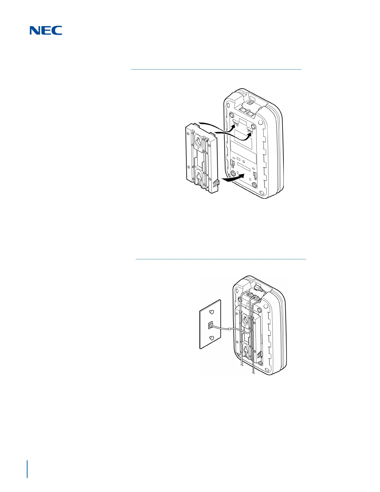 on the base unit. Plug one end of the NEC digital multiline terminal into the