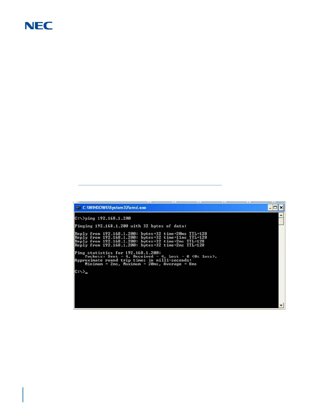system has replied to the Ping request – this indicates that the UNIVERGE SV9100