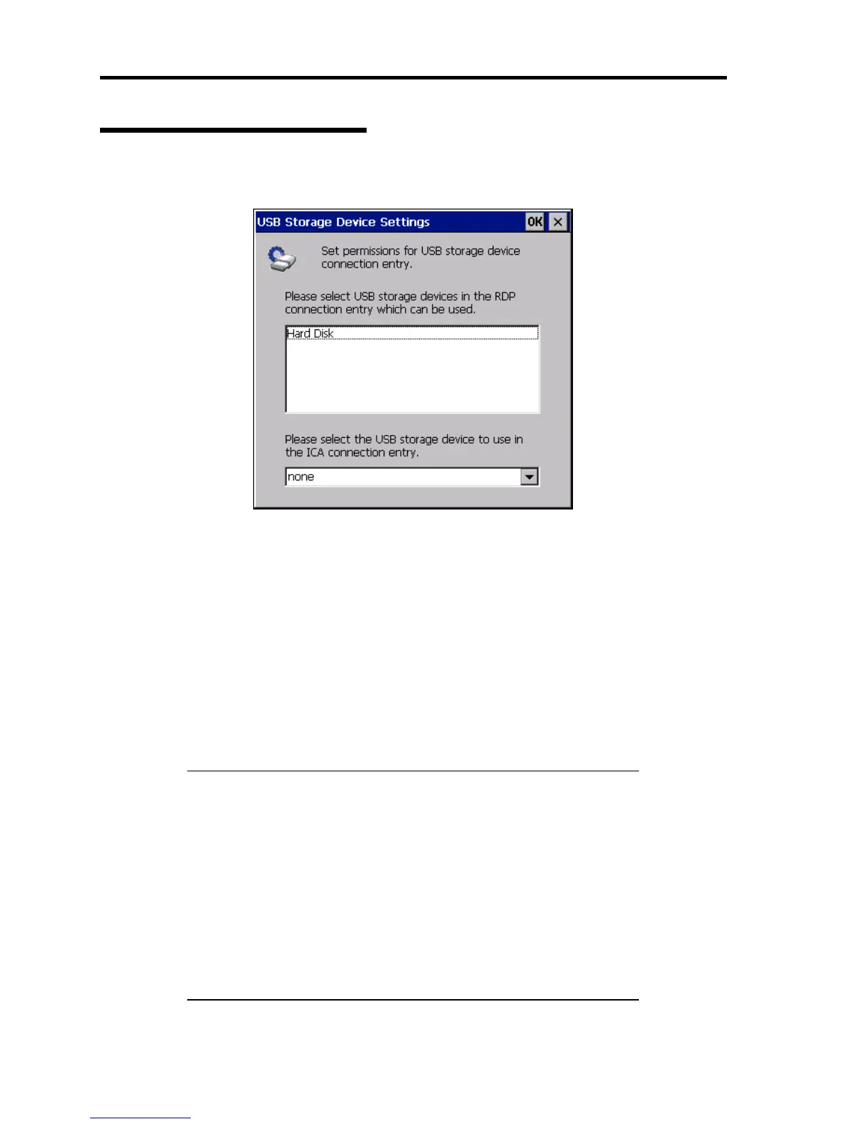 Use this dialog box to configure the USB storage device in the RDP and ICA connection.