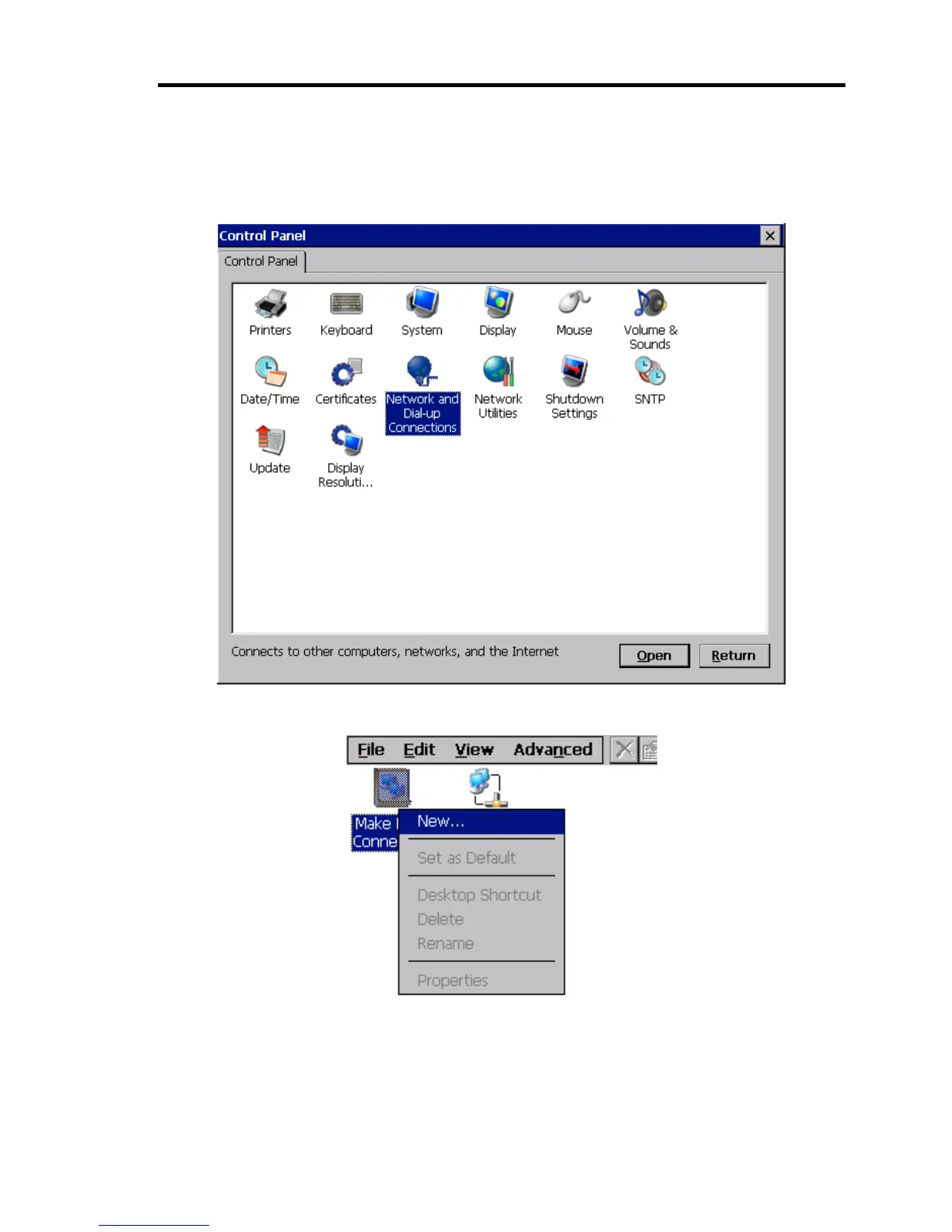 2. Right-click [Make New Connection] and then [New].