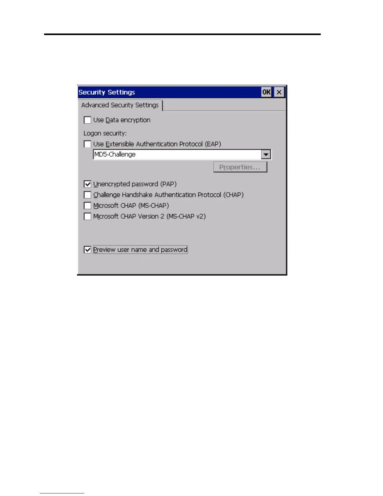 Check to [Unencrypted password (PAP)] and [Preview user name and password].