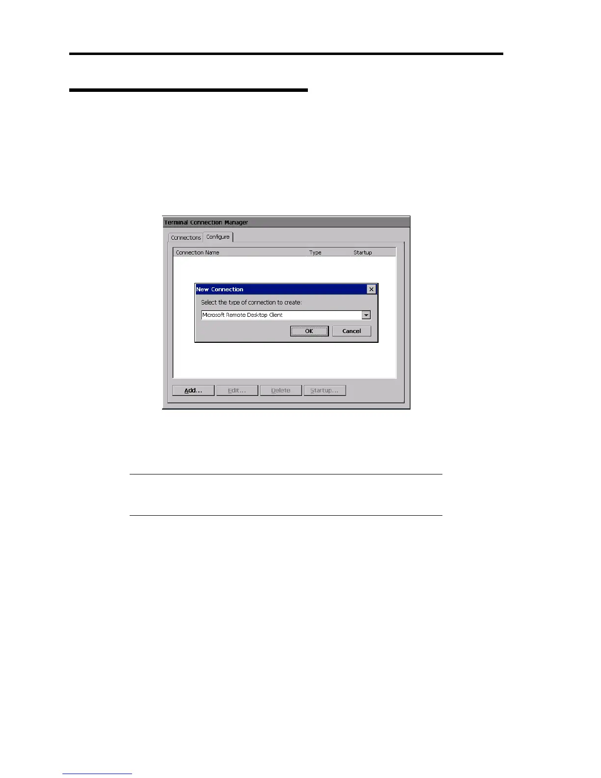 1. Click the [Configure] tab on the Terminal Connection Manager.