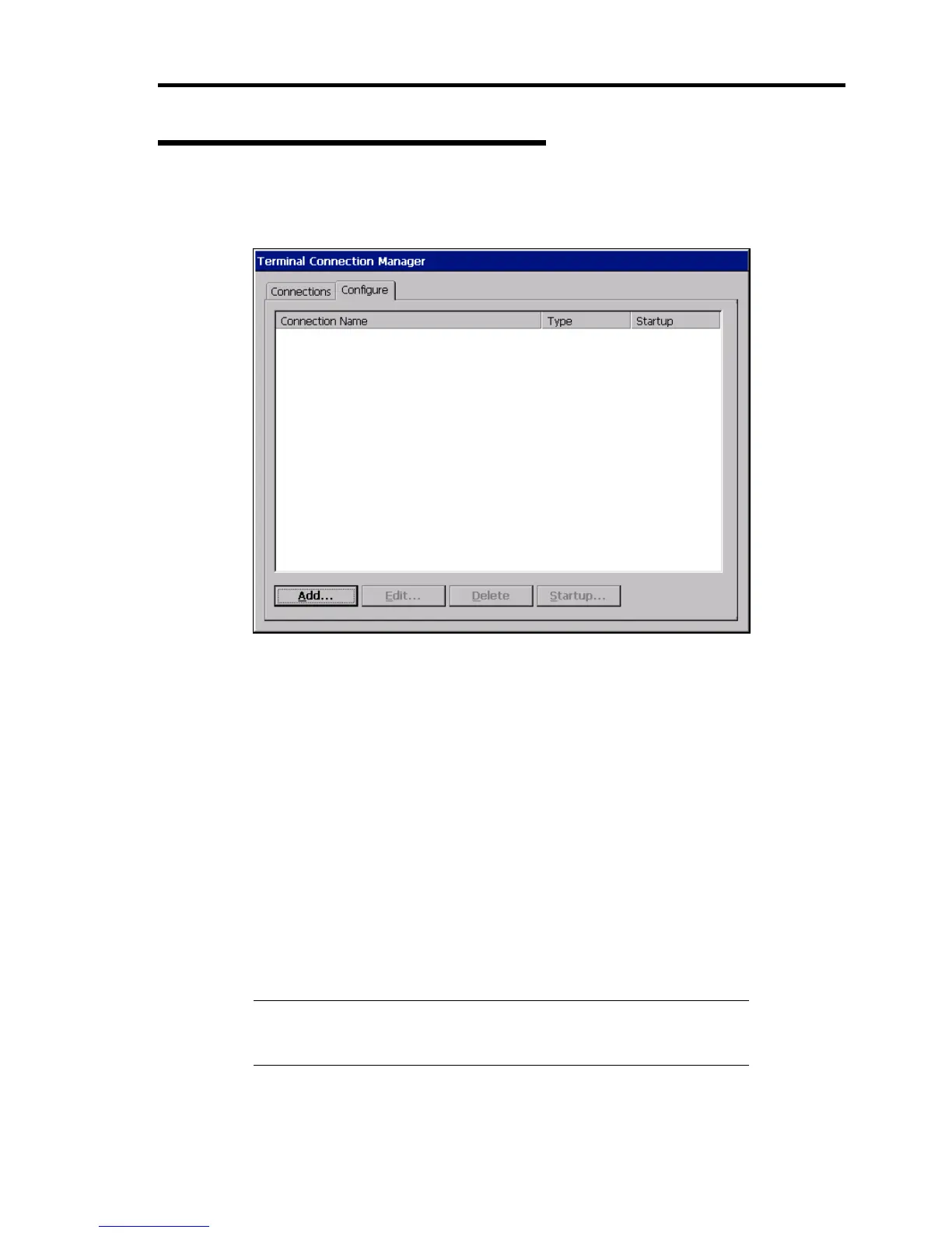 To configure connections, select the desired connection entry from the [Configure] tab in Terminal
