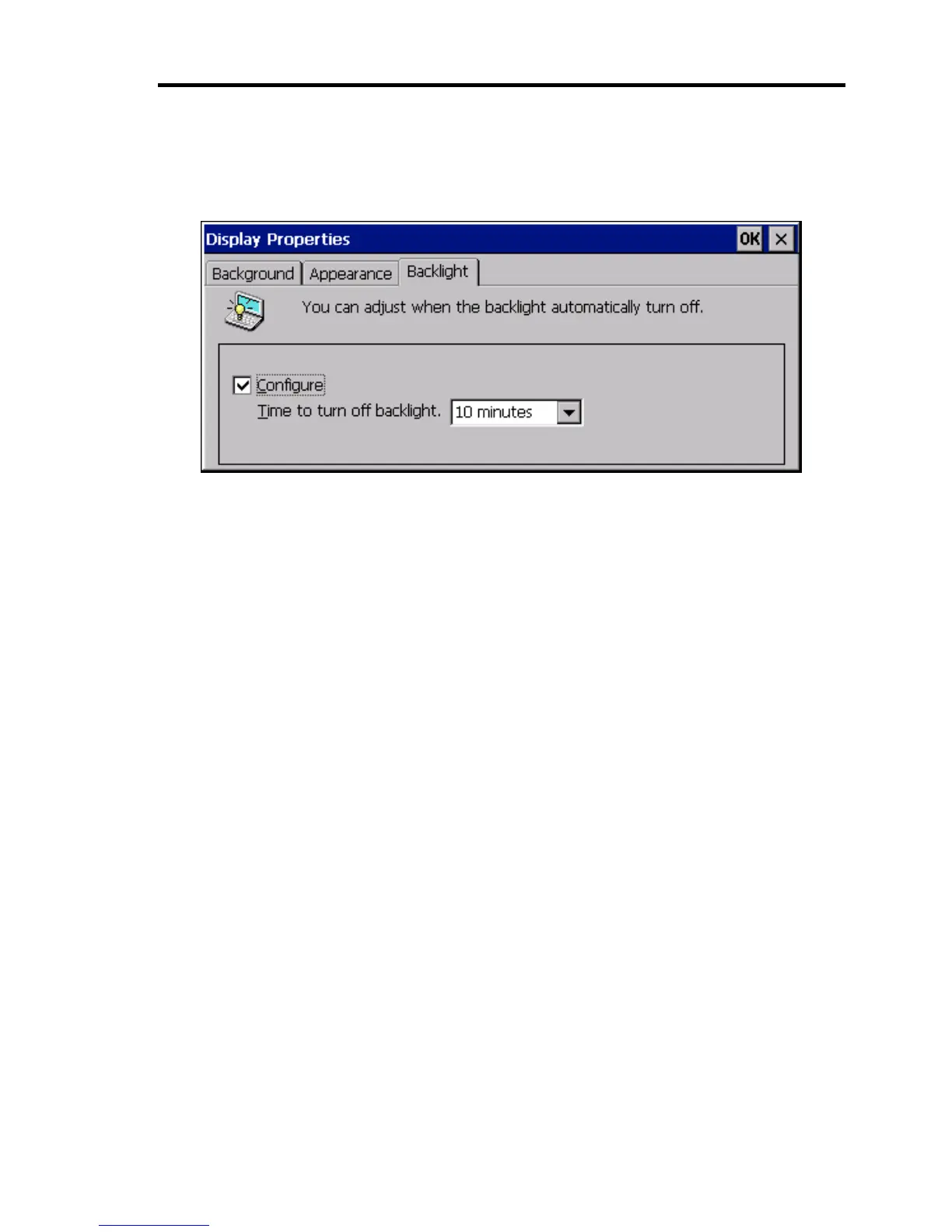 Use the Back Light dialog box to automatically turn off the backlight.