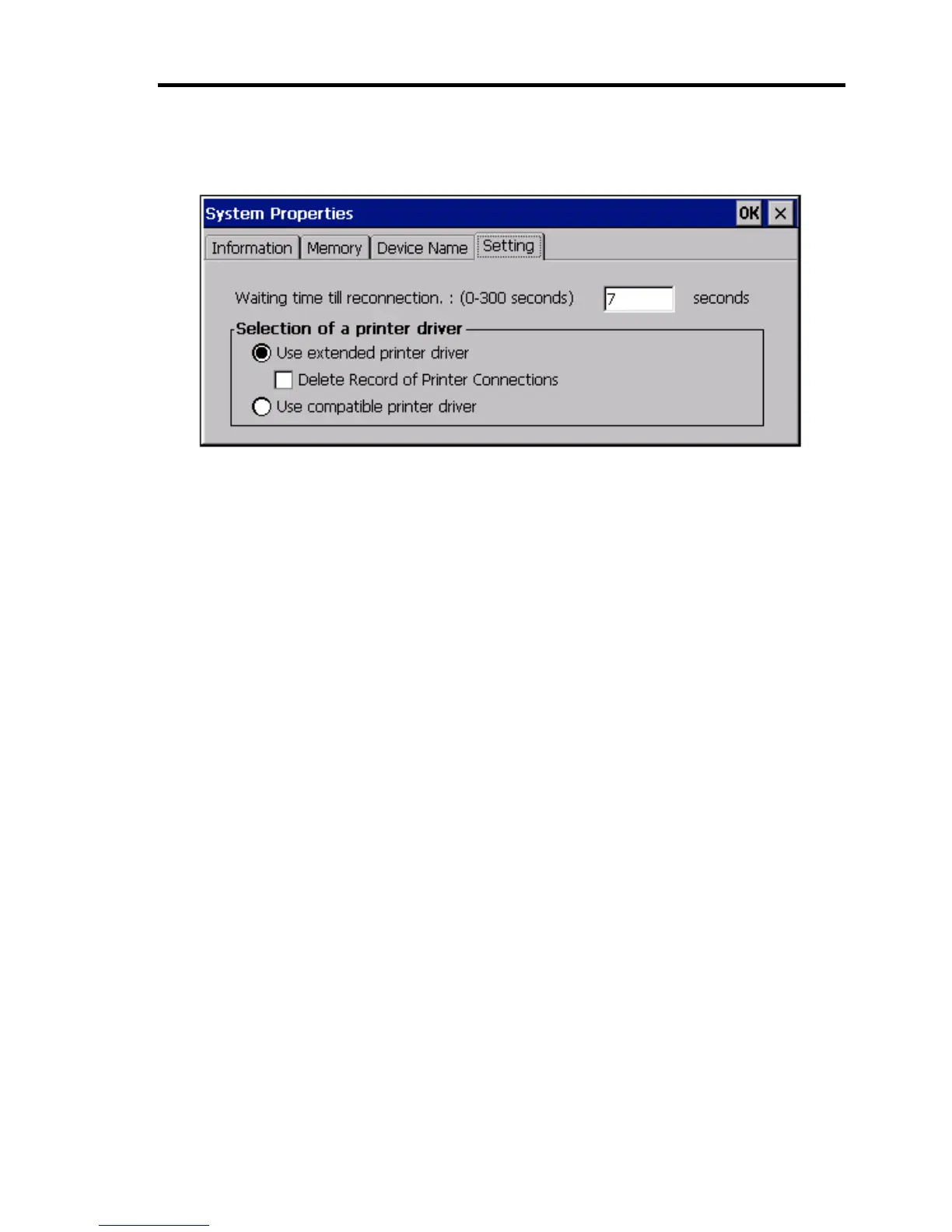 Use this dialog box to specify the waiting time for reconnection and select a printer driver.