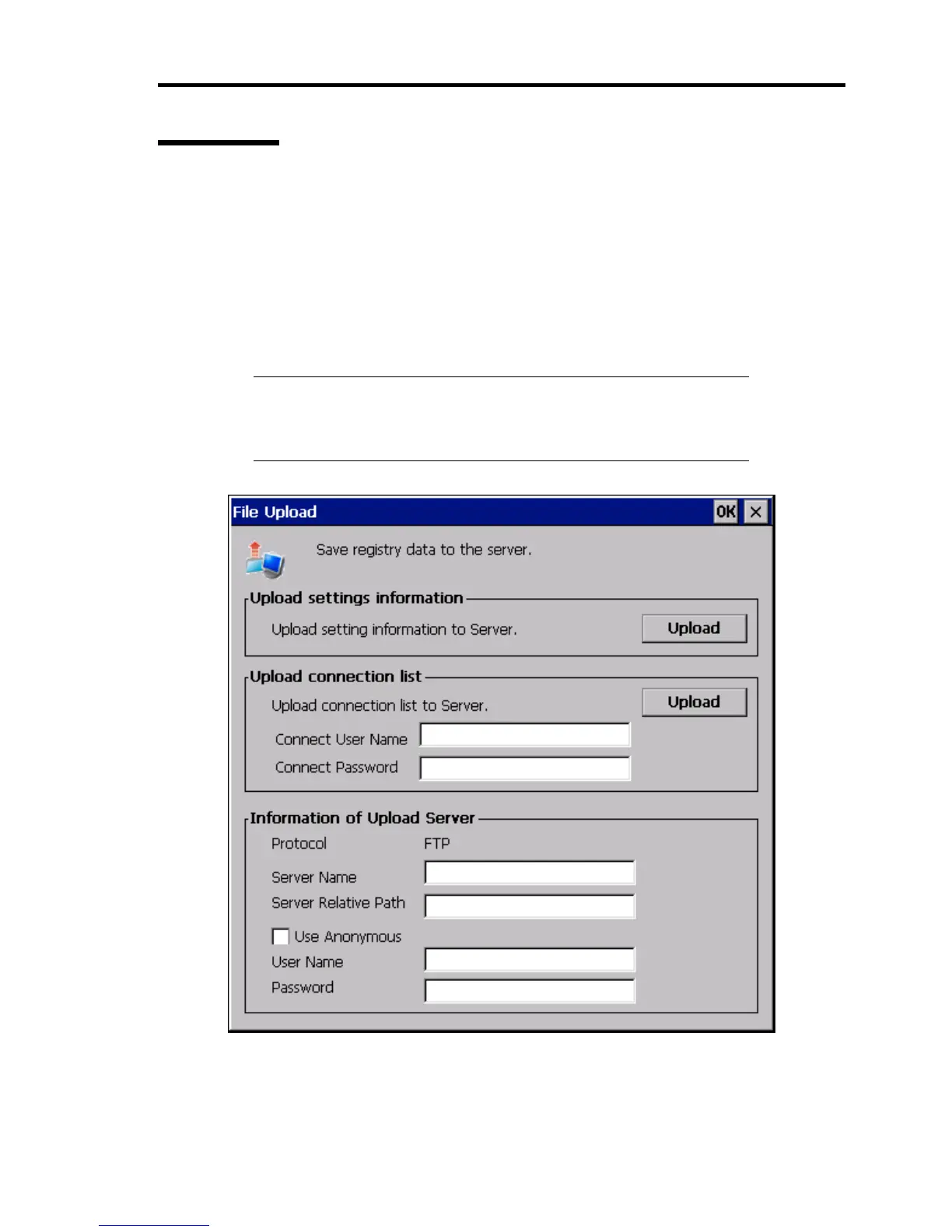 Use this dialog box to upload registry data of US110 to the FTP server.