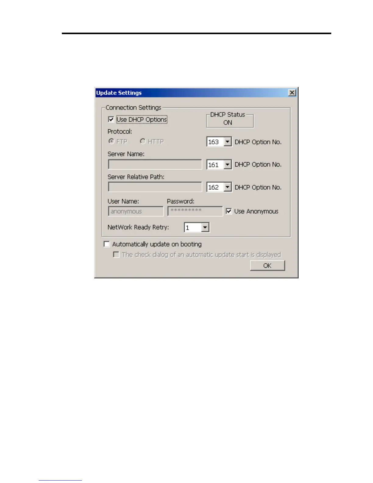 The [Update Settings] dialog box allows you to change the update communication settings.