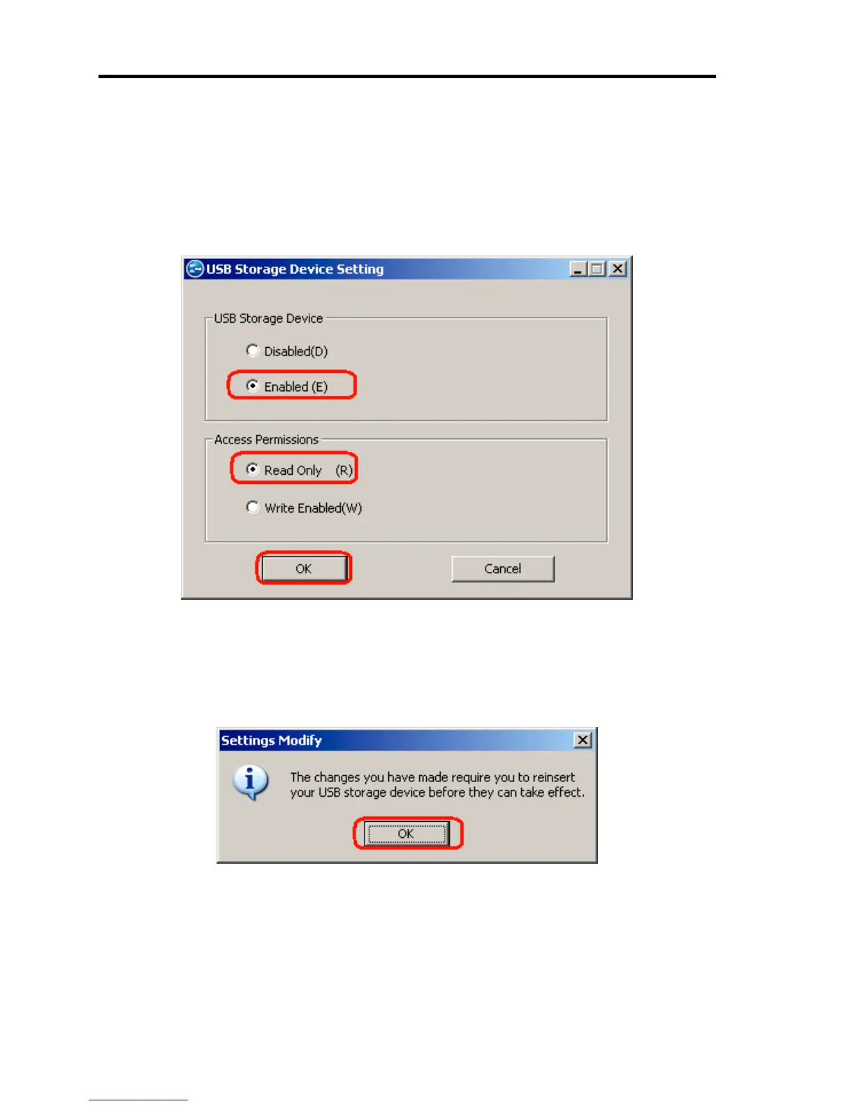 1. On the [USB Storage Device Setting] dialog box, select [Enabled (E)] in [USB Storage