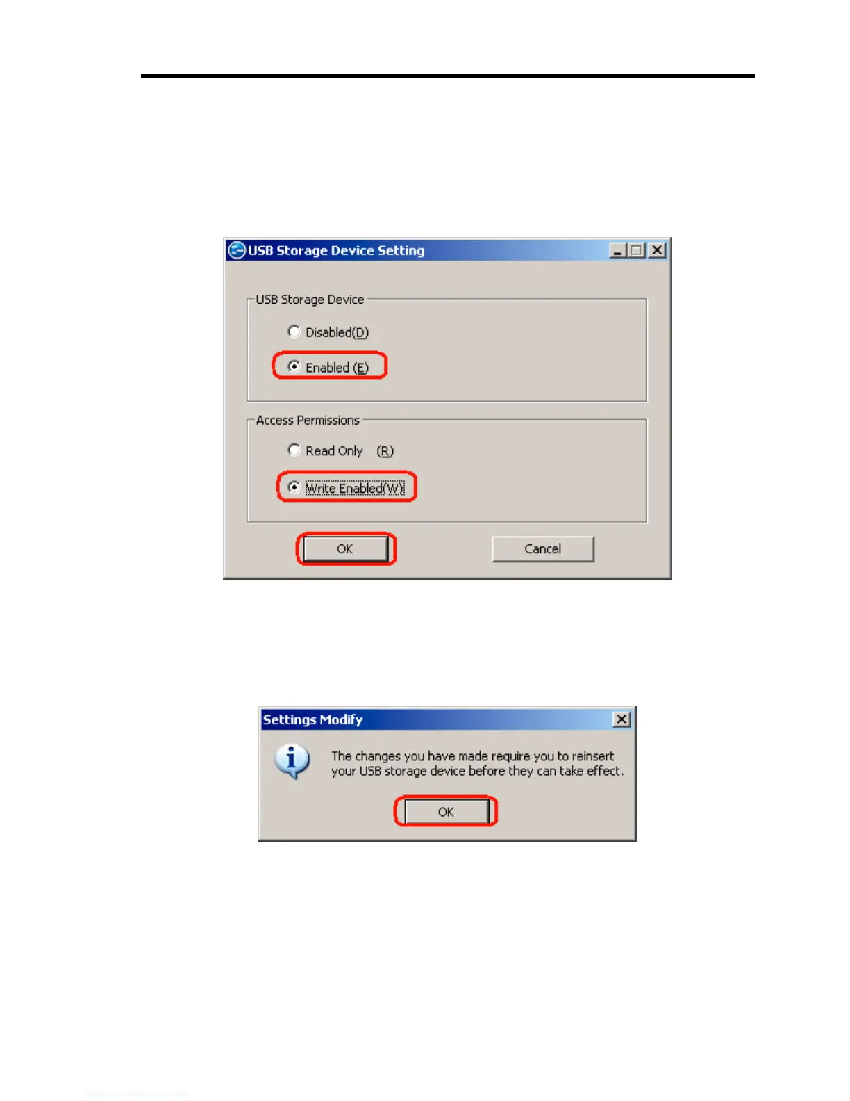 1. On the [USB Storage Device Setting] dialog box, select [Enabled (E)] in [USB Storage