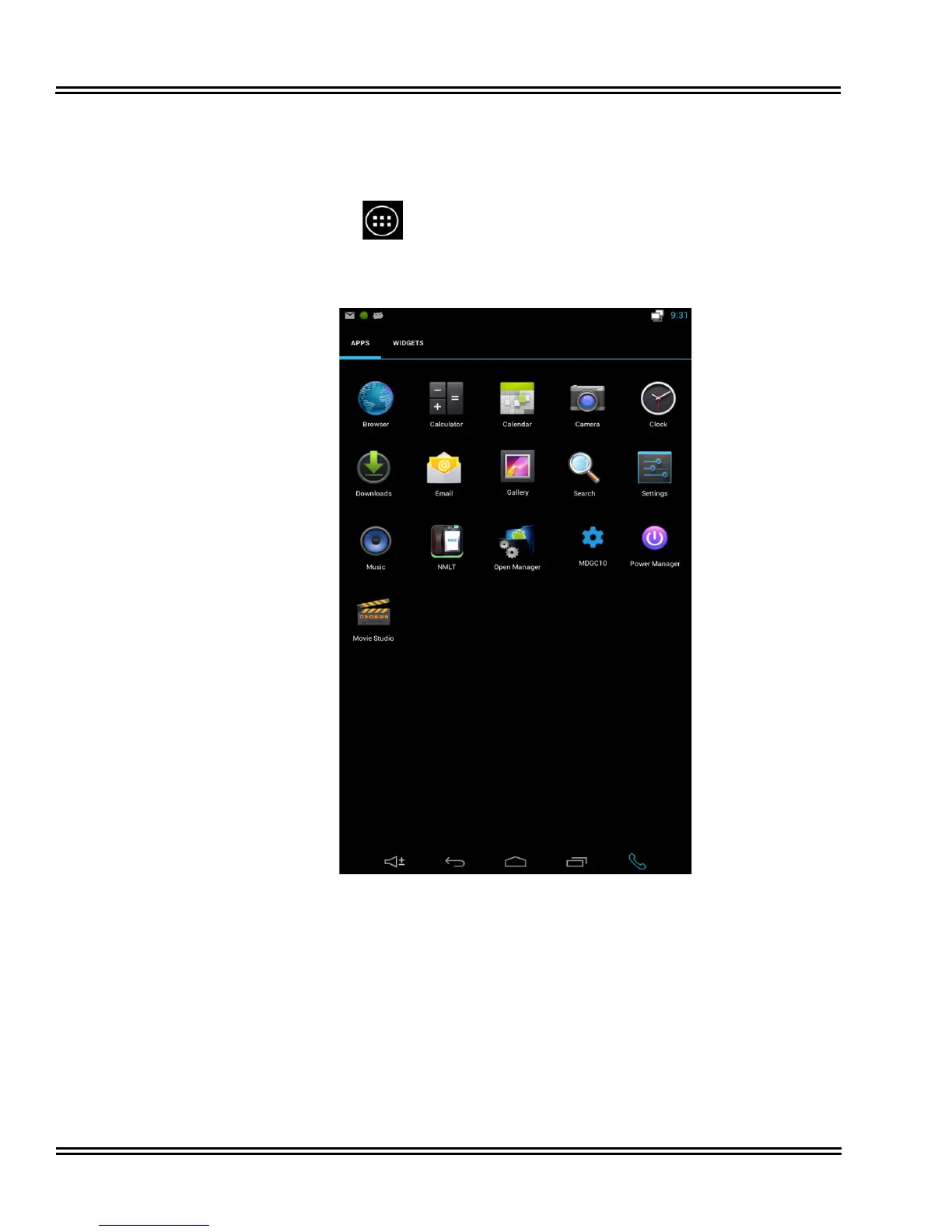 Tap the Applications icon for access to the “APPS” window for all applications,