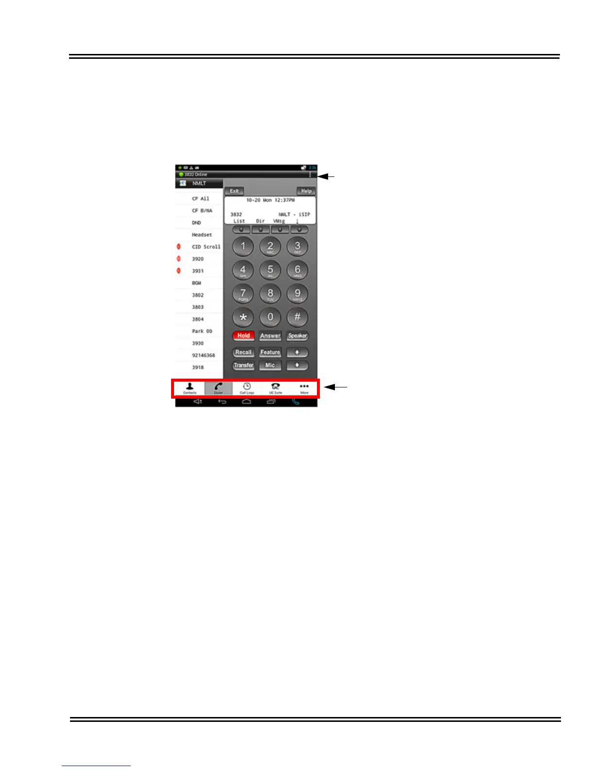 by a red LED below the key. The Answer, Recall, etc. keys