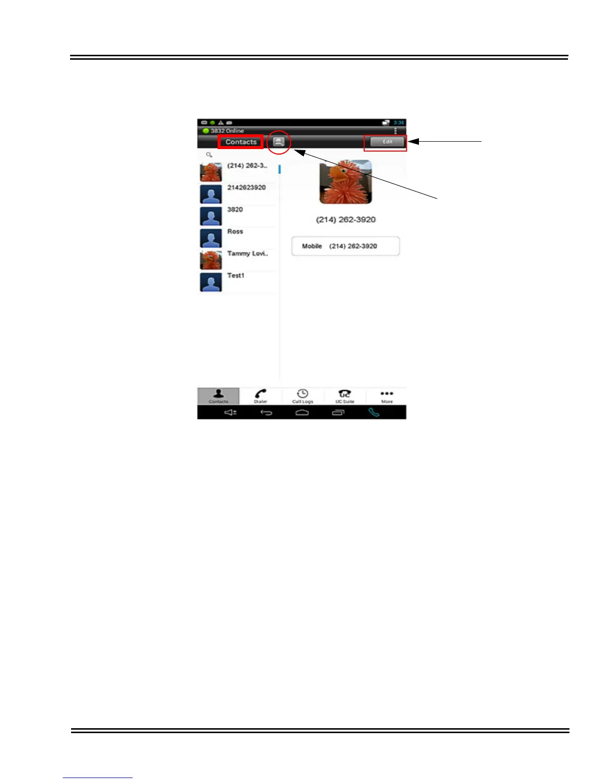 Figure 3-7 Opening Contacts from the UT880 NMLT Dialer App